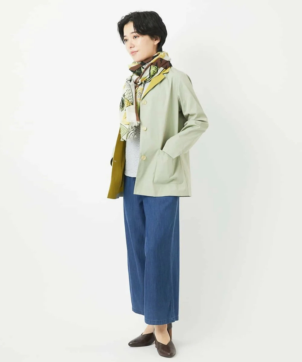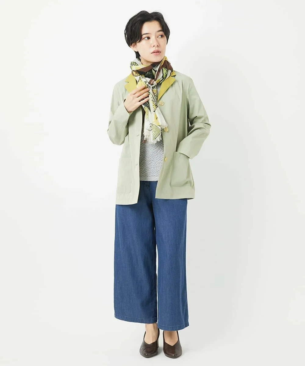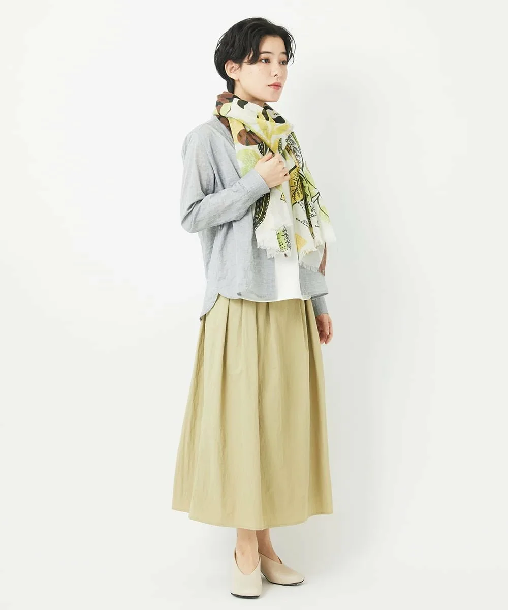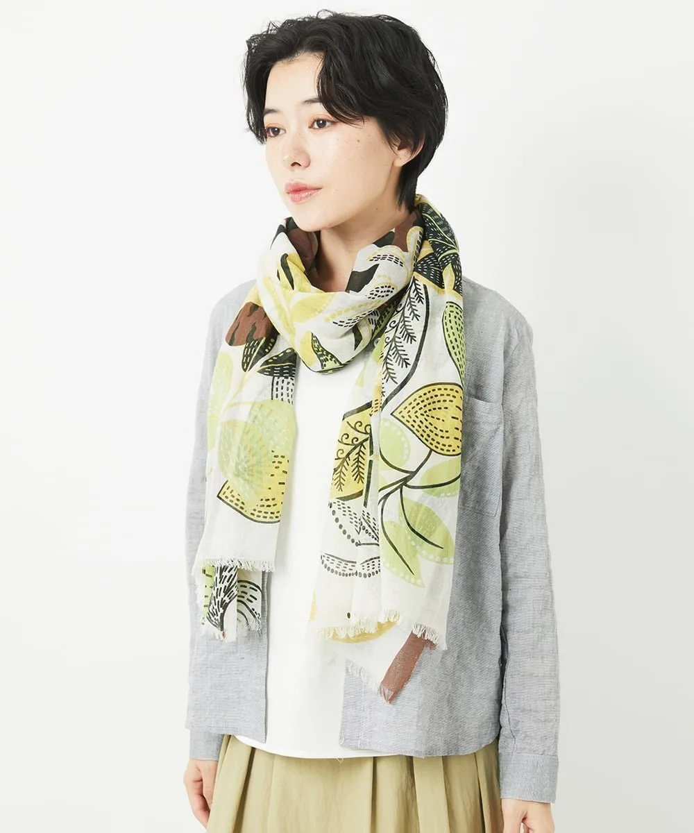 В разложенном виде многоцветный дизайн позволяет легко носить его на шее, так как он хорошо отражает цвет лица, а бежевый базовый цвет хорошо сочетается с цветом лица.