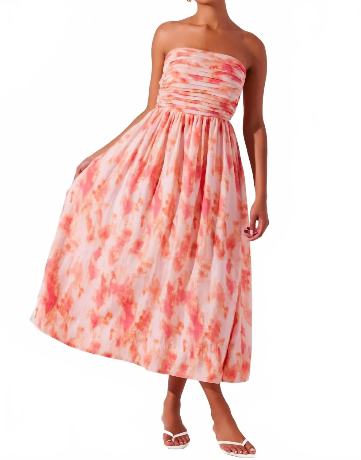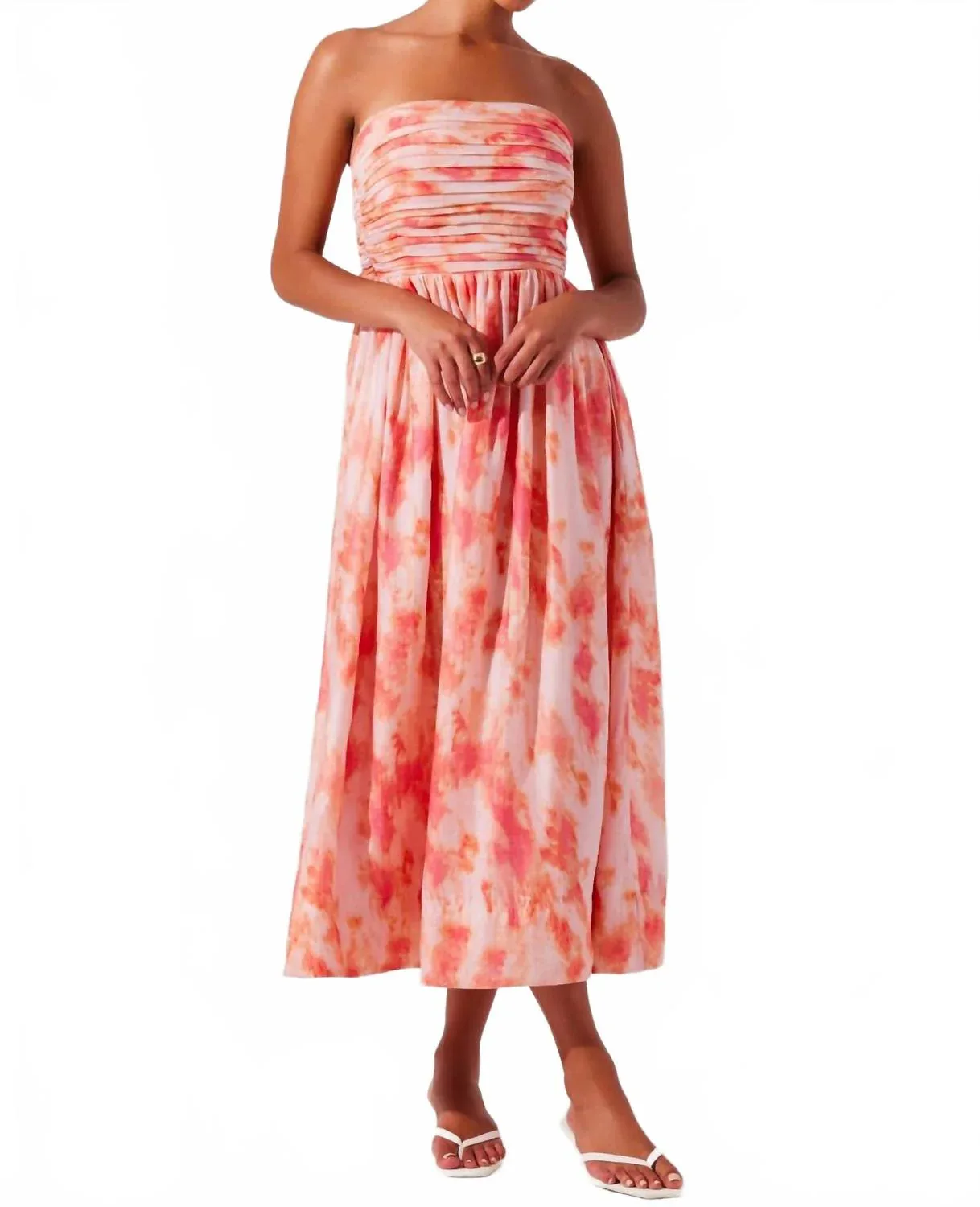 Коралловое платье миди Aneesha Tie Dye Astr