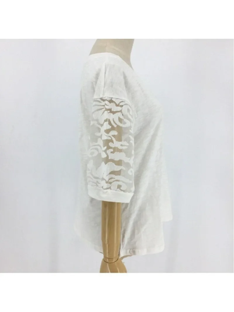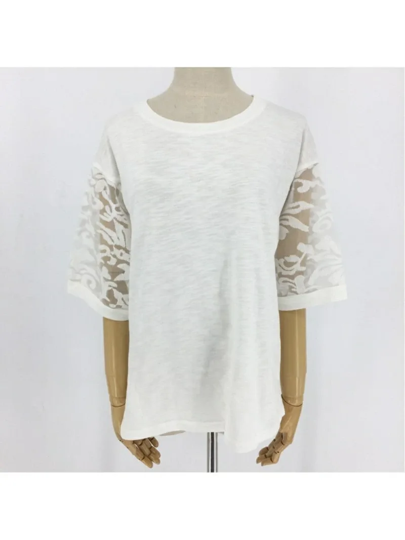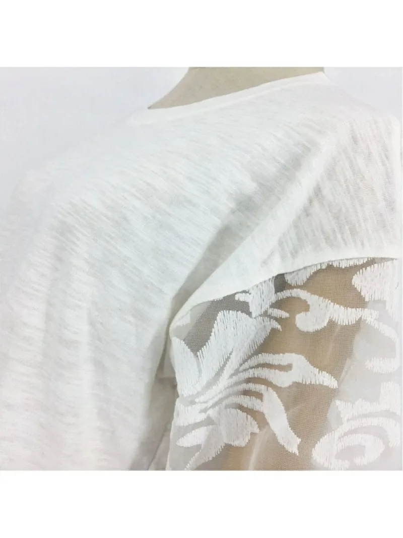 Этот топ из вышитого тюля украшен кружевной вышивкой, которая добавляет нотку гламура.