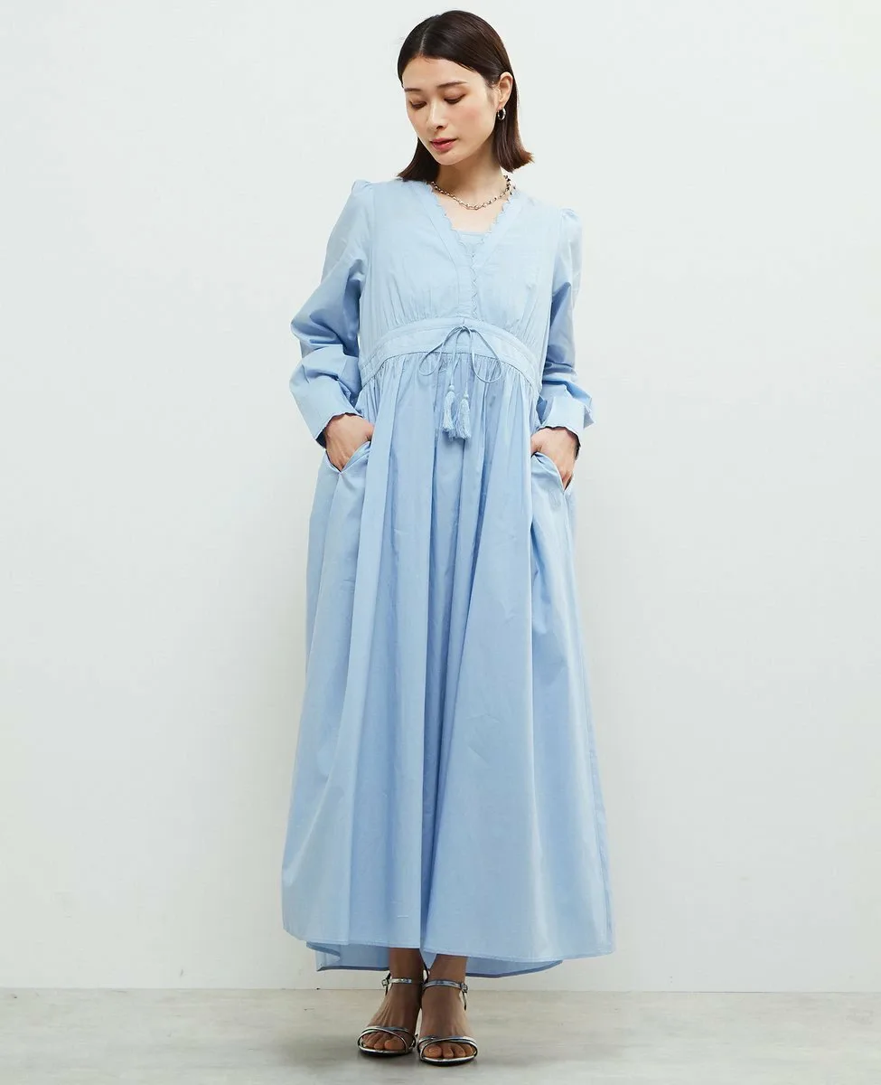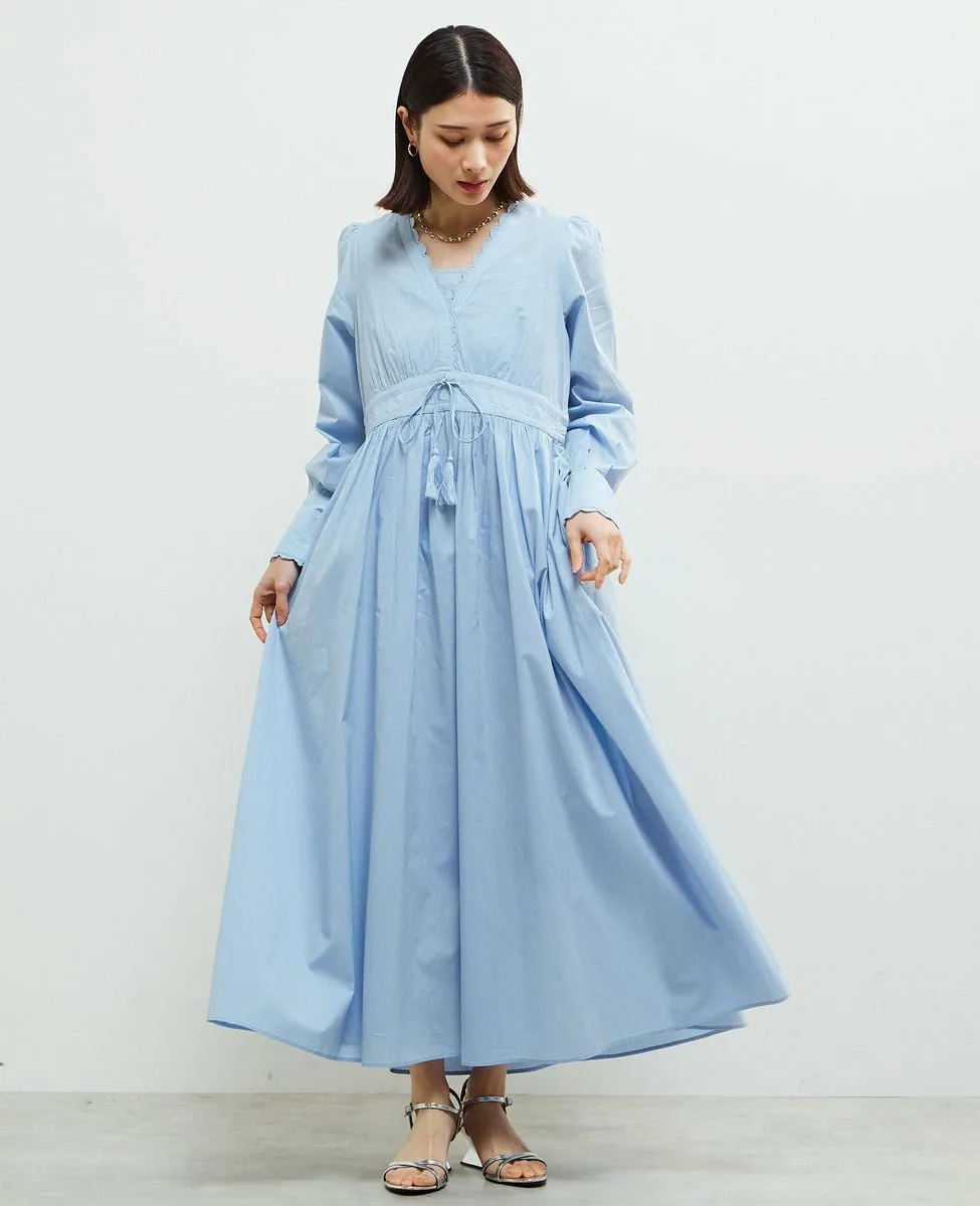 Платье с типичным индийским дизайном, украшенное вышитыми фестонами на воротнике и манжетах,