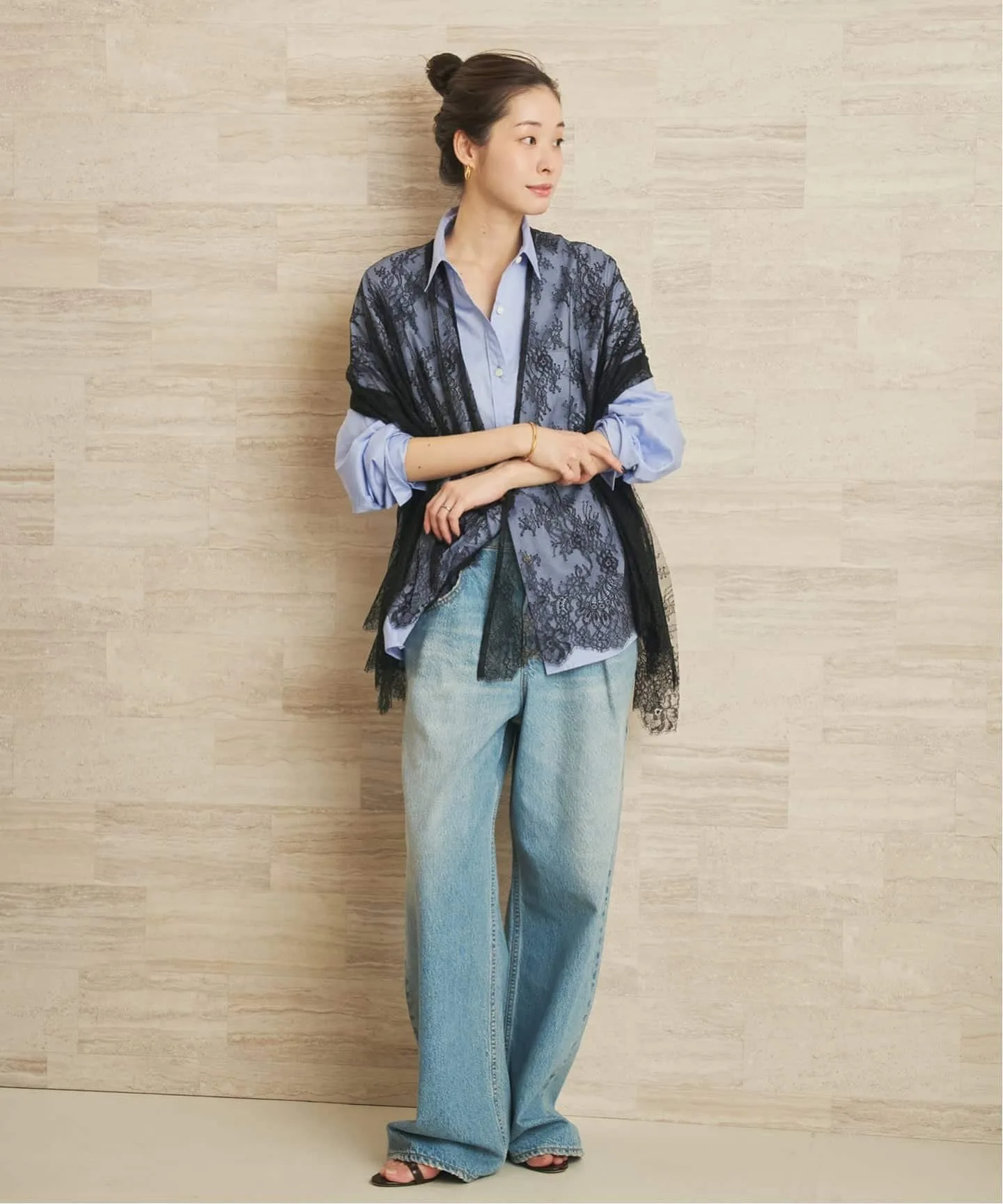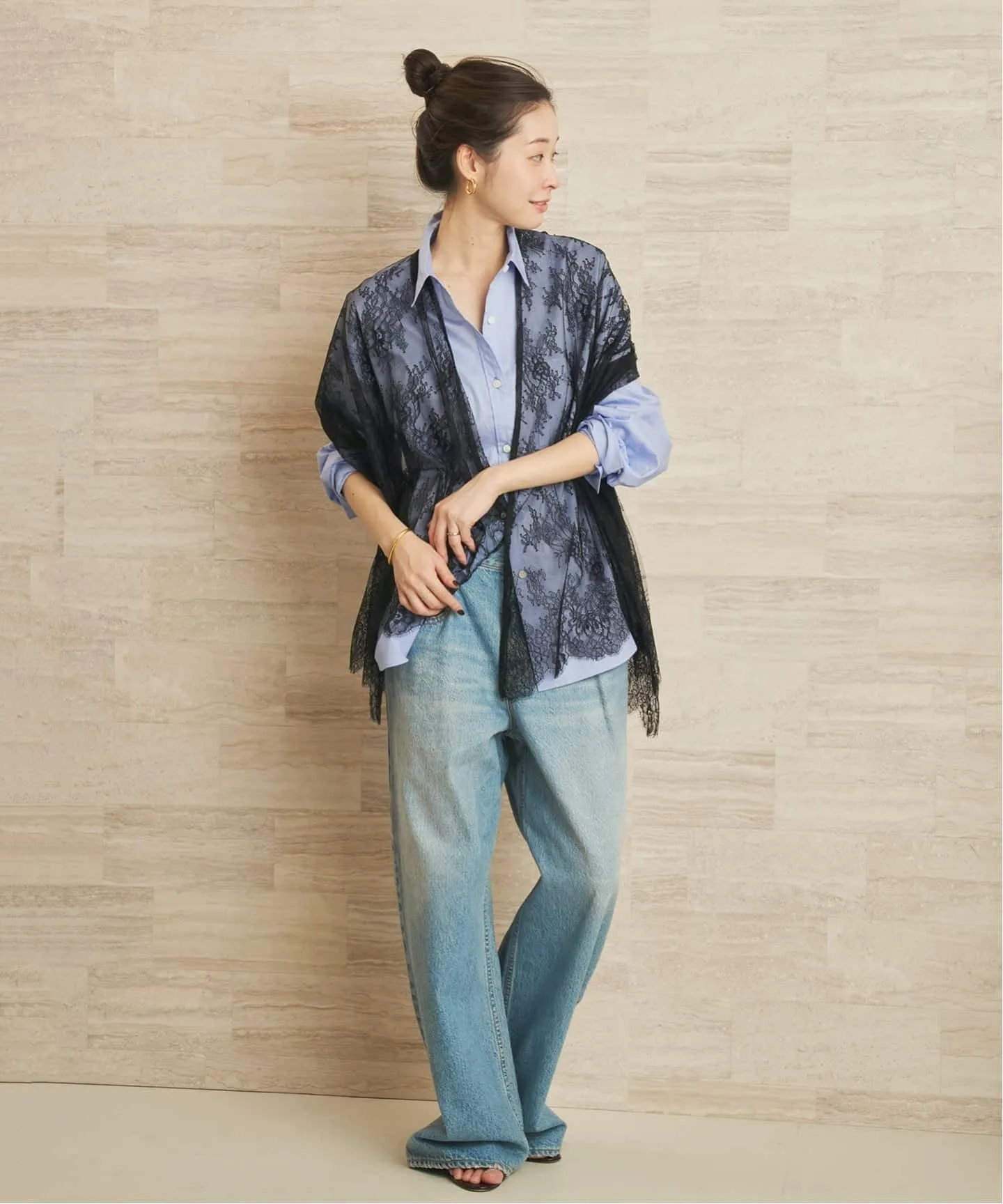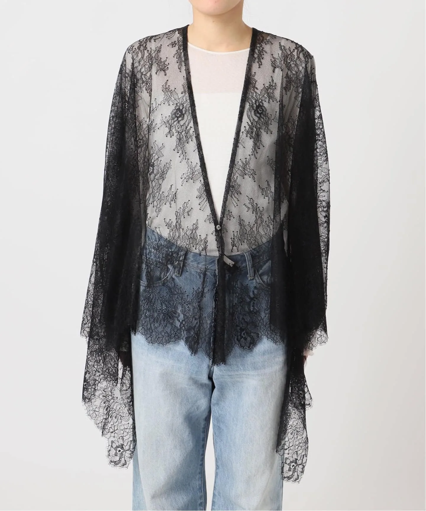 Изготовленный известным японским производителем, этот предмет одежды излучает роскошь благодаря своему нежному кружеву.