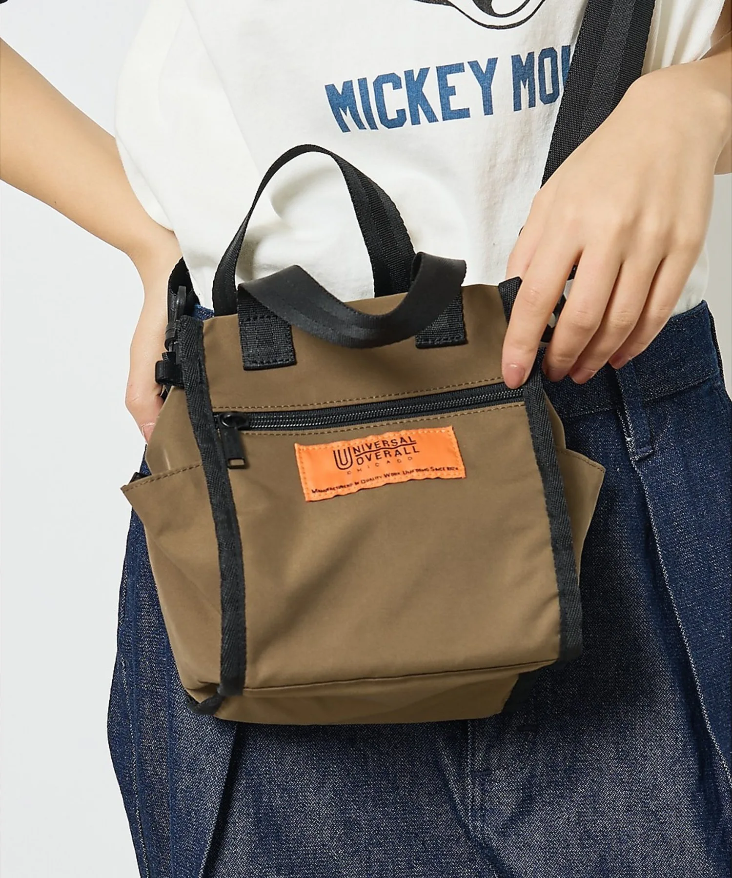 Миниатюрная сумка через плечо от известного бренда рабочей одежды UNIVERSAL OVERALL, которую можно носить как на плече, так и в руке. Съемный ремешок позволяет носить ее как сумку через плечо или как обычную сумку. Эта компактная сумка идеально подходит для повседневного использования, в ней удобно хранить смартфон и кошелек. Оранжевая фирменная бирка, являющаяся символом бренда, расположена на передней части сумки в качестве центрального элемента. Она идеально подходит для поездок на выходные, фестивалей, прогулок, в качестве дополнительной дорожной сумки или как повседневная сумка для поездок без наличных.