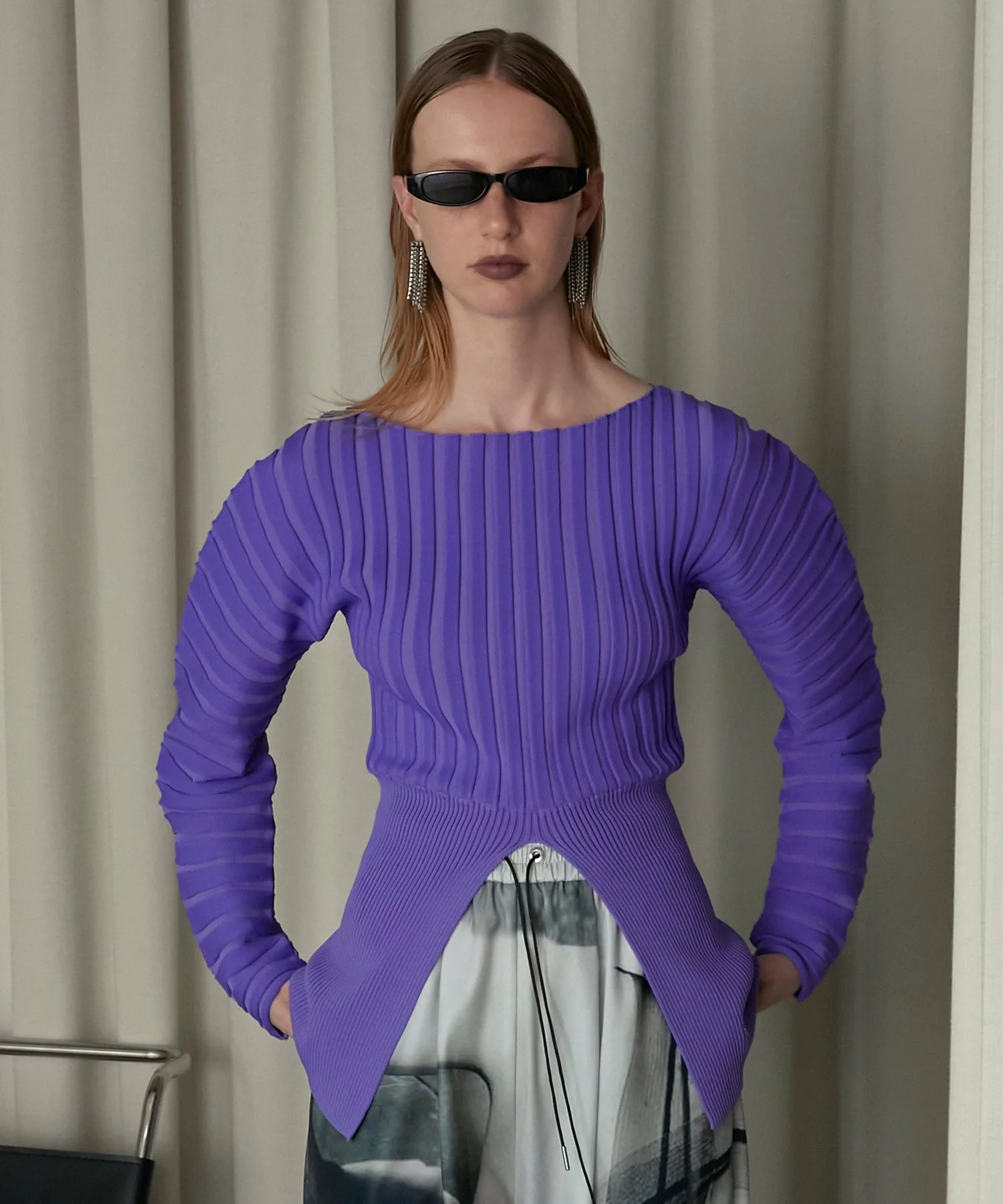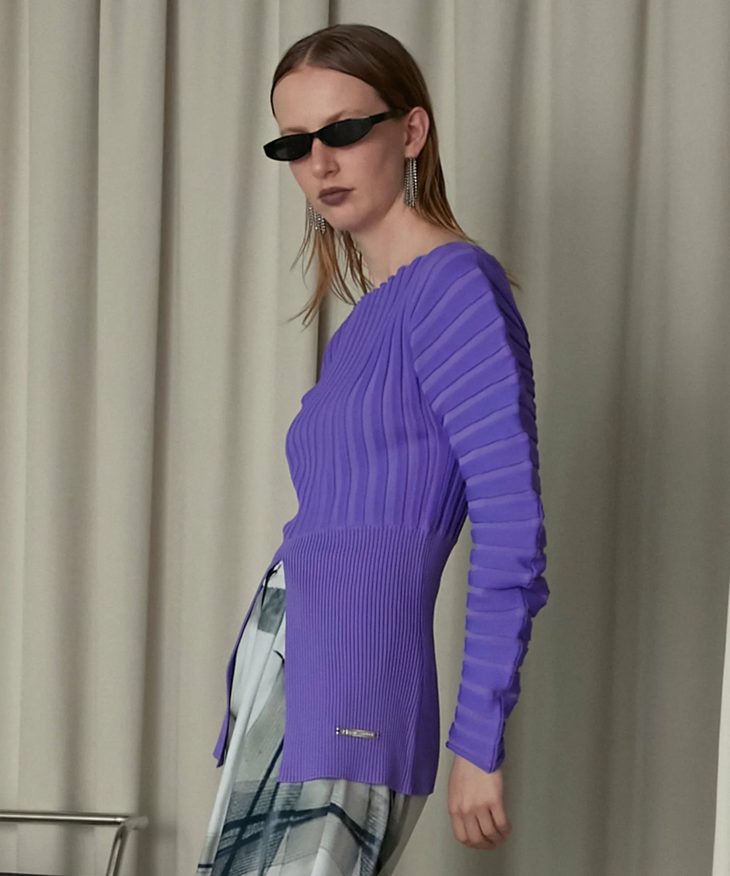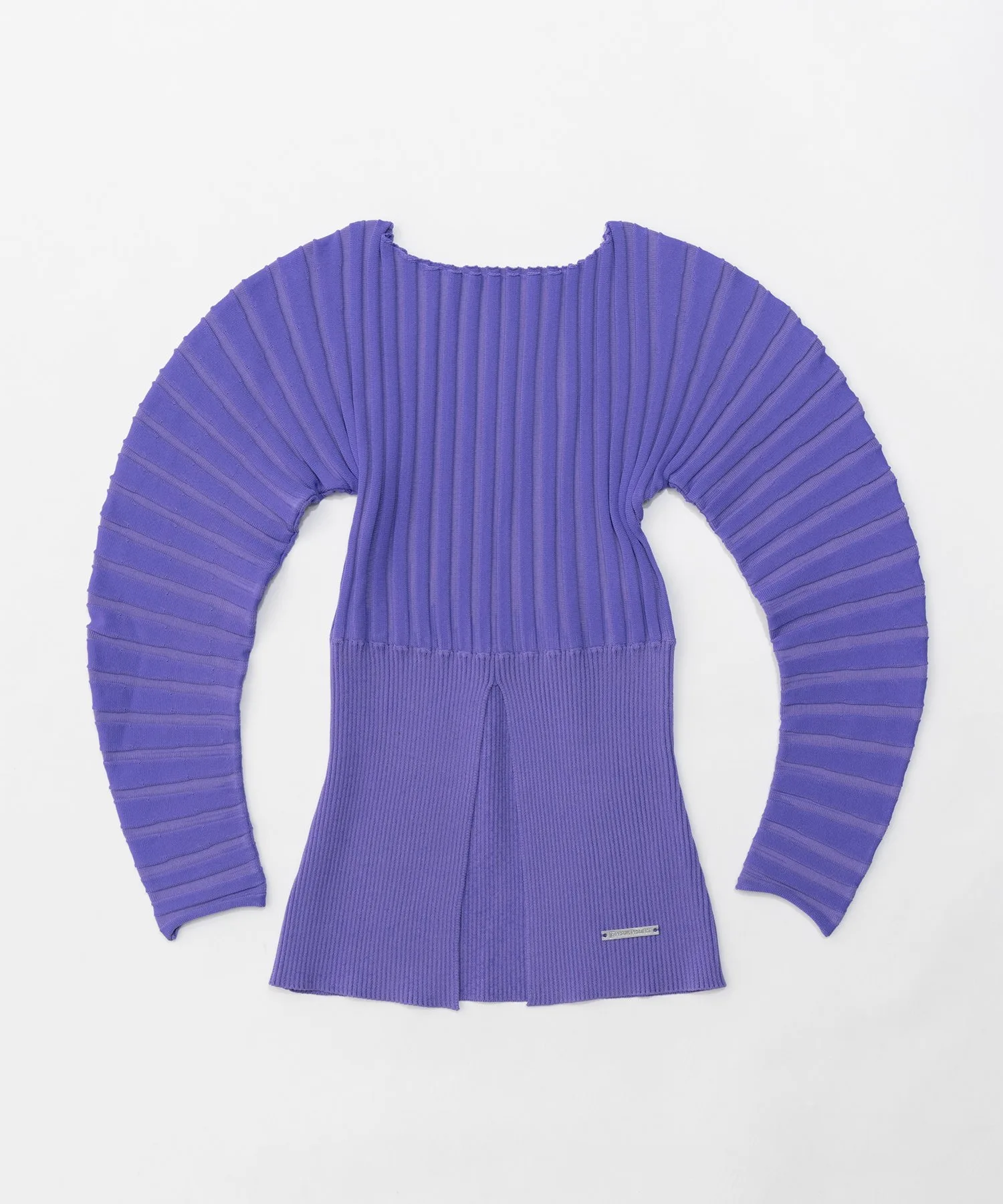 Сплошная трикотажная резинка придает рукавам округлый вид.