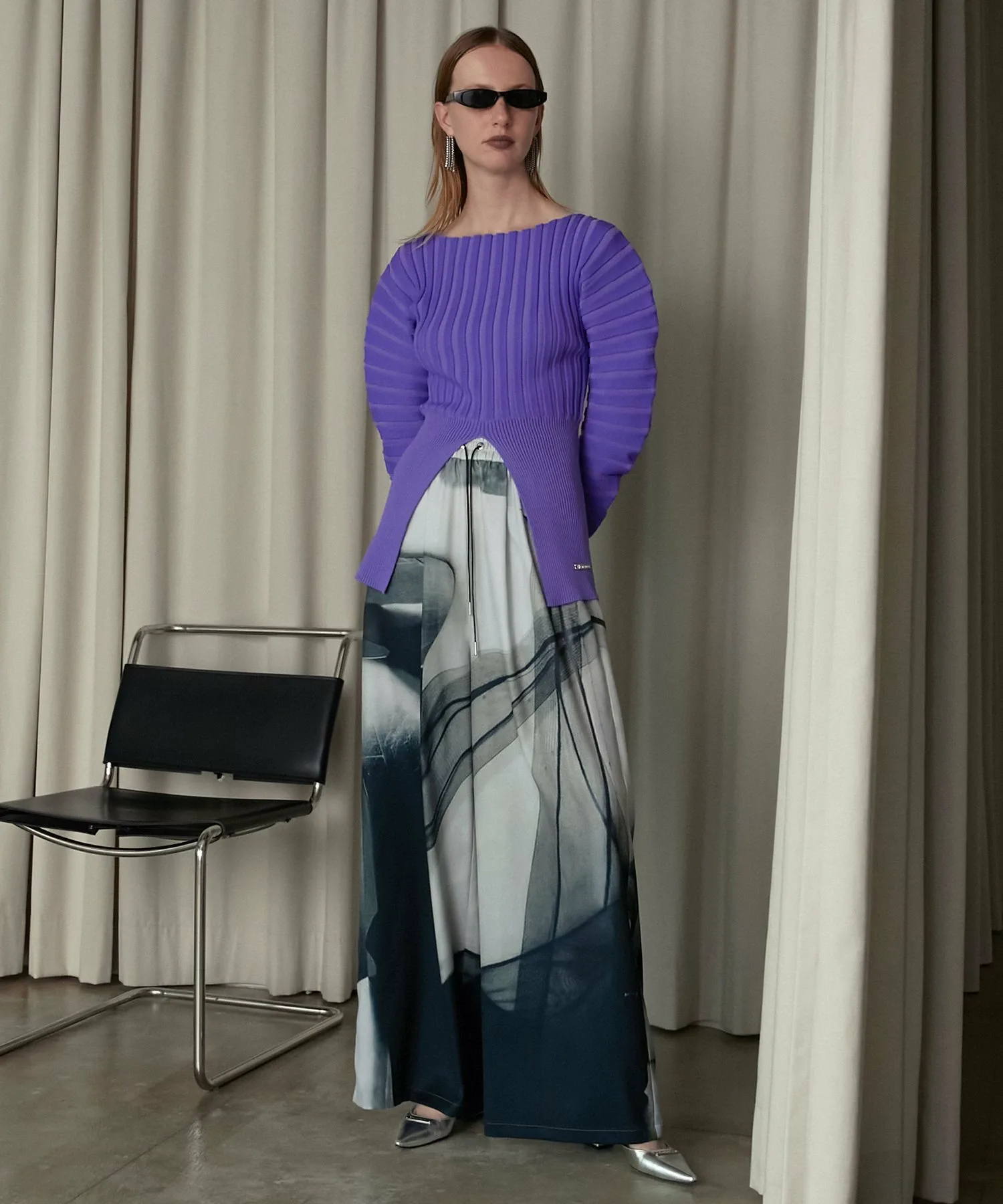Контраст между объемными рукавами и облегающим силуэтом — ключевой момент.