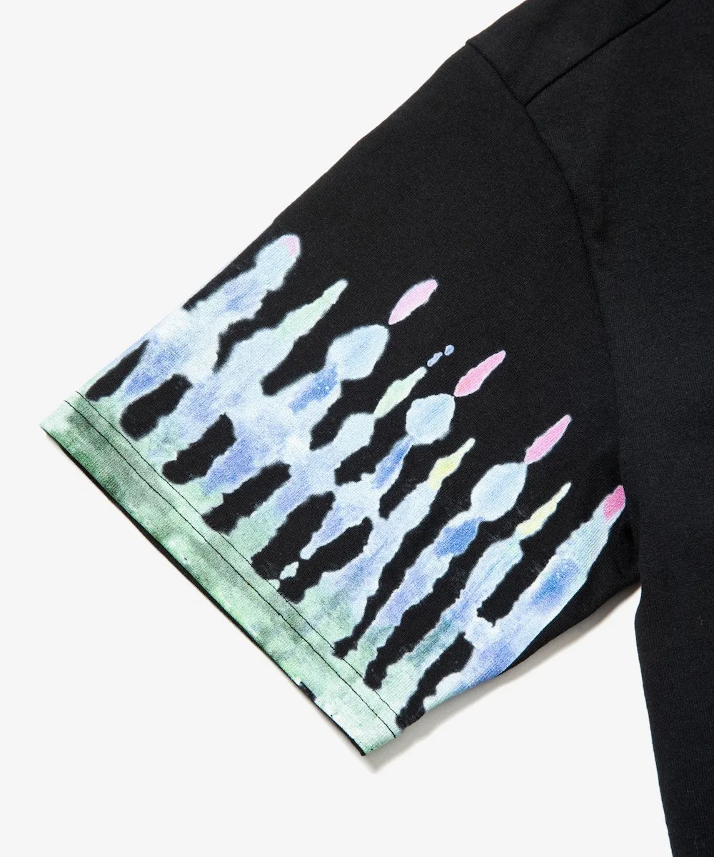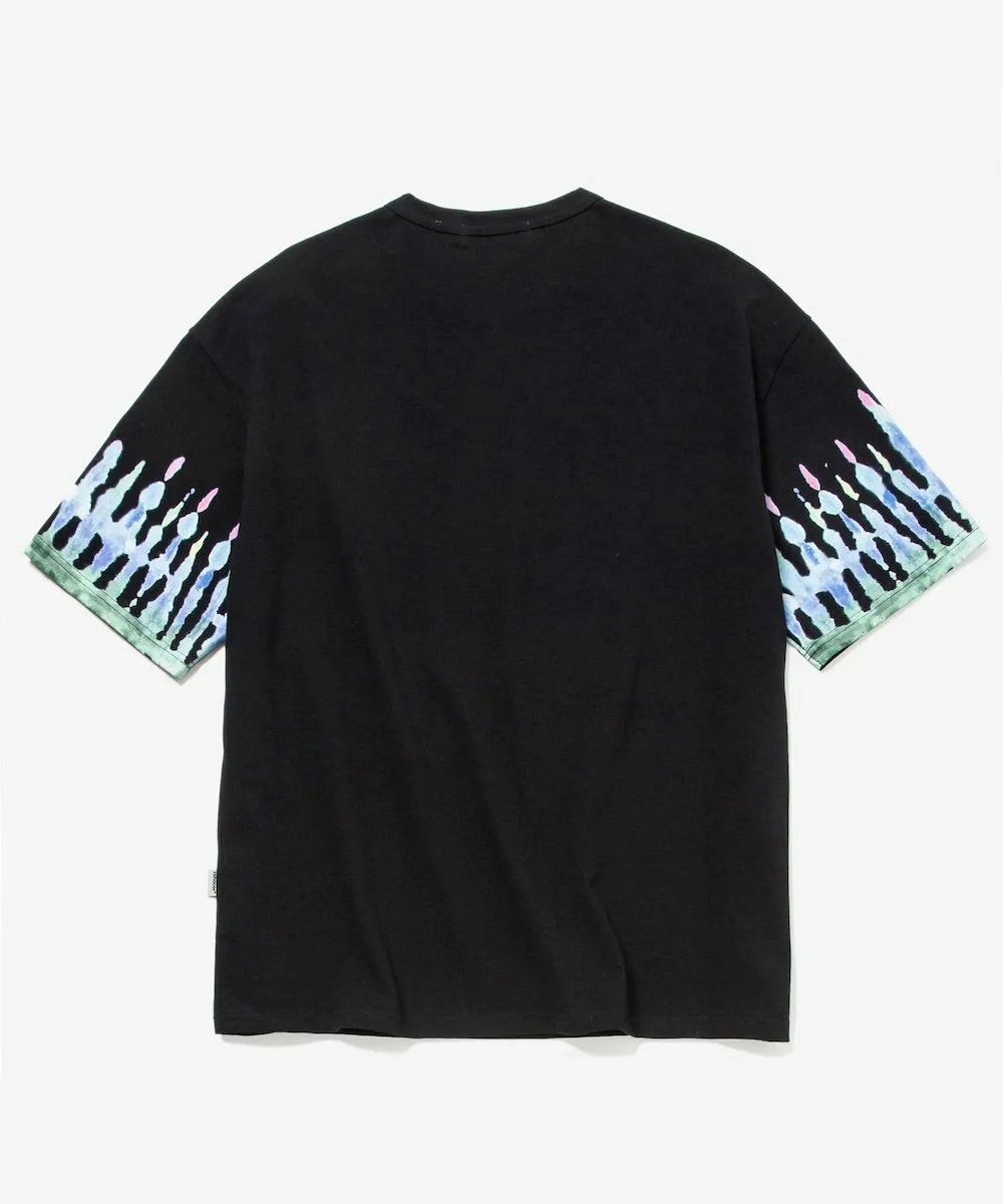Этот крой и пошив отличаются свободными рукавами и нанесенным струйным принтером узором в технике тай-дай по всей поверхности, чего невозможно добиться с помощью обычной окраски.