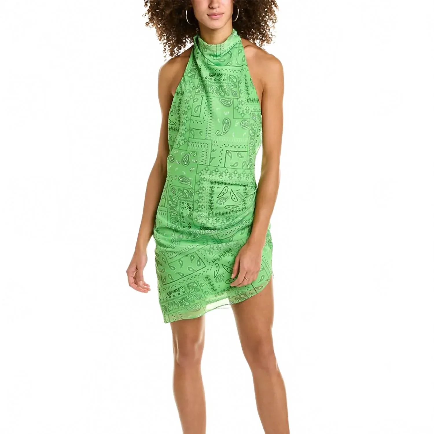 Короткое и воздушное платье для теплых дней. Представляем мини-платье Amanda Uprichard Samba - элегантное дополнение к вашему летнему гардеробу, идеально подходящее для отдыха. Это платье без рукавов украшено модным узором «пейсли» в стиле банданы, имеет облегающий силуэт длиной 91 см, привлекательный вырез-халтер и сборки по бокам. Изготовлено из 100% полиэстера, имеет стильный воротник-халтер и надежную застежку на крючки. Платье универсальное и стильное, но для сохранения безупречного вида рекомендуется химчистка.