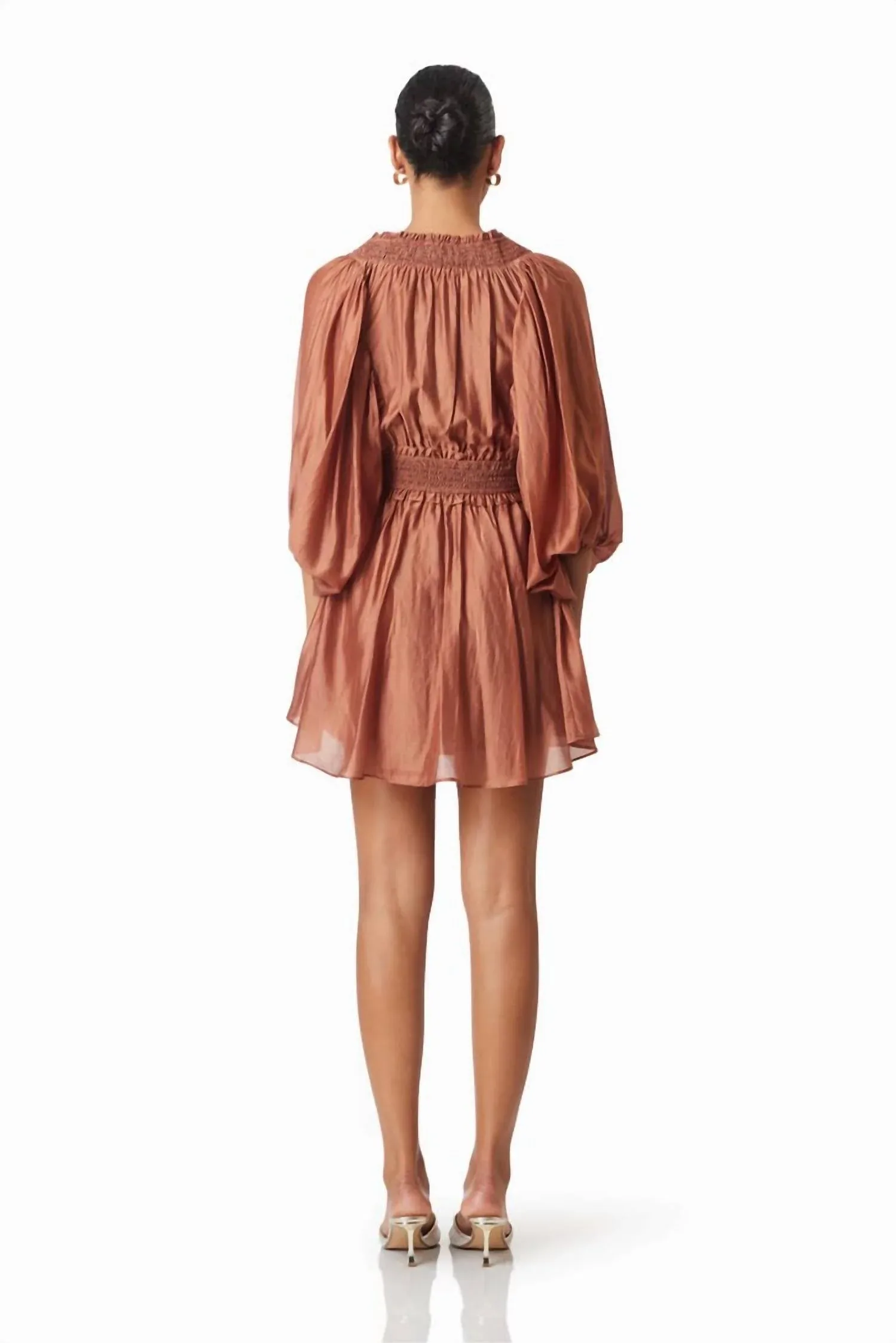 Платье Fauna Mini Dress от ELLIATT - стильная вещь, созданная для летнего отдыха, в эффектном коричневом цвете. Это женское платье имеет рукава три четверти с эластичной резинкой и V-образный вырез на резинке для комфорта и элегантности. Изготовлено из мягкой смеси 85% тенселя и 15% полиэстера, с подкладкой из 100% вискозы, имеет расклешенную мини-юбку и удобный фасон с эластичной талией. Идеально подходит для отпуска, подчеркните минималистичный стиль этим однотонным коричневым платьем А-силуэта.