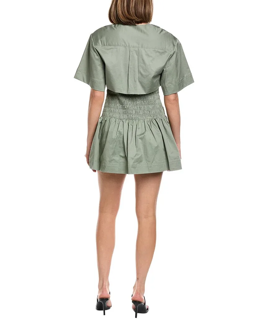 • Мини-платье Genny цвета древесного мха с присборенной талией, передними нагрудными карманами и V-образным вырезом.