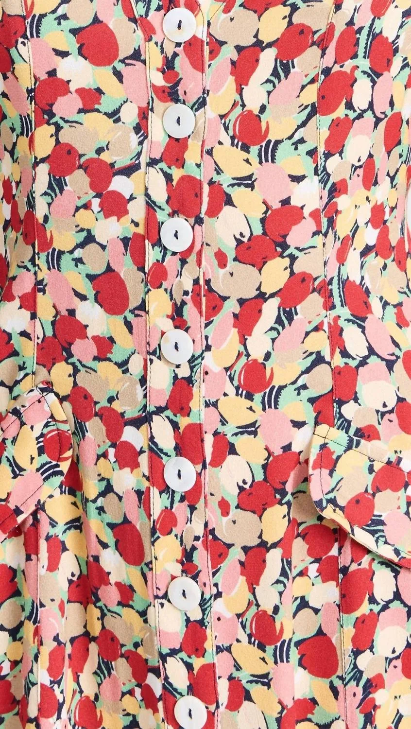 Идеальное мини-платье для теплых месяцев. Представляем мини-платье Olina с цветочным воротником от RIXO - потрясающее дополнение к вашему гардеробу, идеально подходящее для весеннего сезона. Это мини-платье А-силуэта с длинными рукавами и декоративными накладными карманами, выполненное в очаровательном красном цветочном узоре, идеально подойдет для вечеринки в честь рождения ребенка или празднования Дня благодарения. Изготовленное из роскошной вискозной смеси, платье импортировано и имеет надежную застежку на пуговицы и элегантный V-образный вырез. Для оптимального ухода рекомендуется только химчистка.