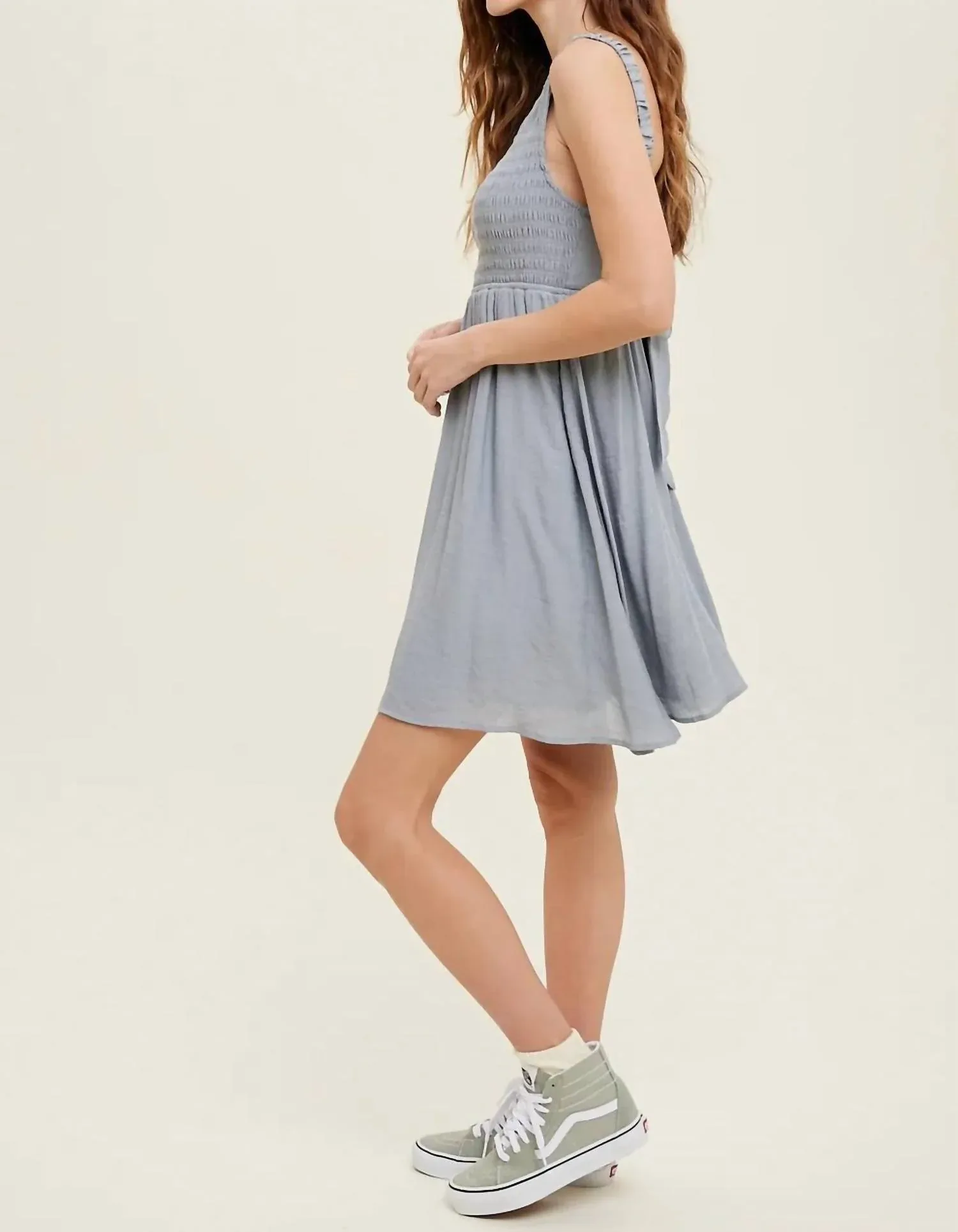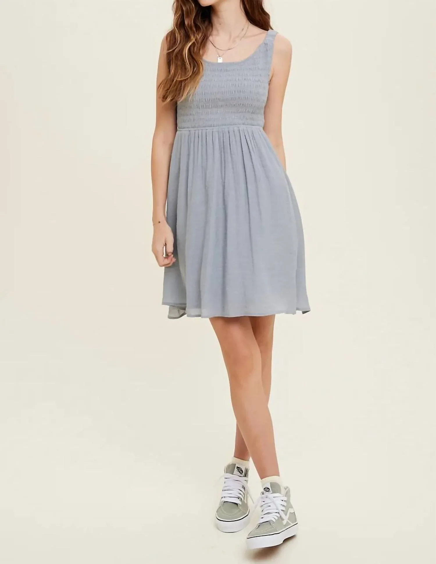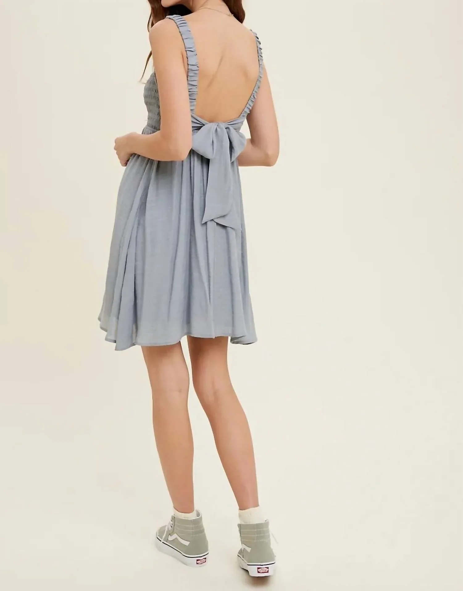 Ощутите непринужденную элегантность, воплощенную в нежном облачном оттенке. Платье А-силуэта без рукавов. Стильный вырез-лодочка, сборки и эластичная талия. Изготовлено из 100% полиэстера. Шикарный дизайн с открытой спиной и завязками, а также практичные боковые карманы обеспечивают функциональность и стиль. Полностью на подкладке, что гарантирует гладкую и безупречную посадку.