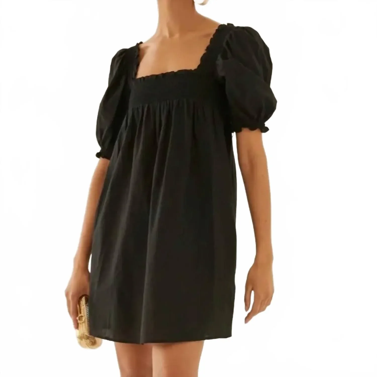 Короткое и воздушное платье для теплых дней. Мини-платье Smocked Puff Shoulder Mini Dress от SOMETHING NAVY изготовлено из 100% хлопка и демонстрирует игривый А-образный силуэт, идеально подходящий для летних мероприятий. С короткими рукавами, пышными плечами и сборками, это платье излучает стиль бохо-шик. Оно имеет свободный крой и квадратный вырез для дополнительной изюминки. Уход прост: машинная стирка, сушка в горизонтальном положении; удобная застежка-молния.