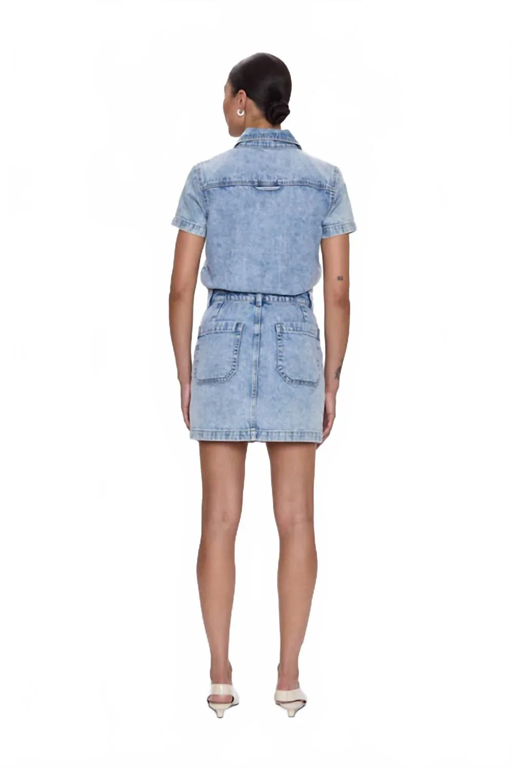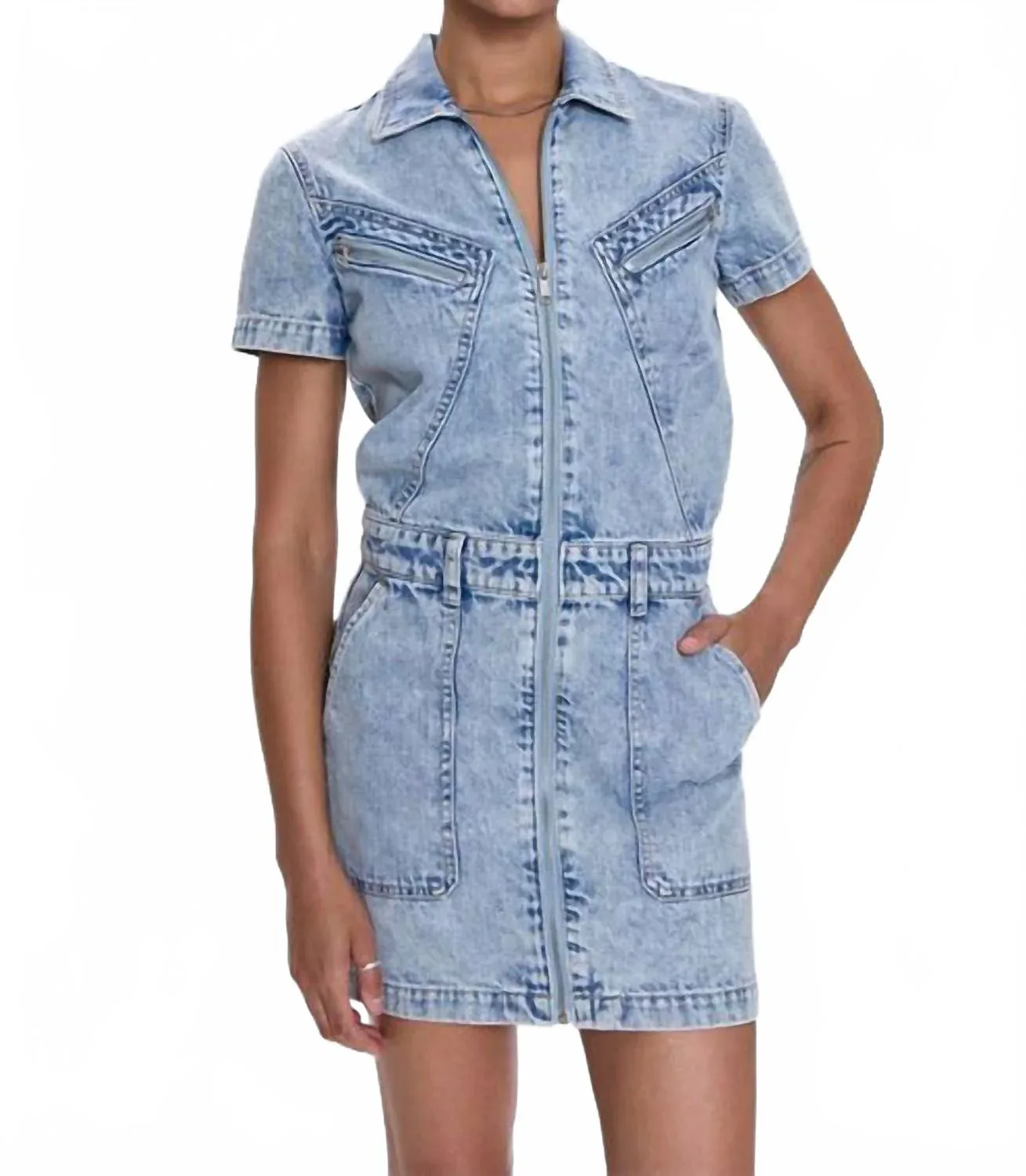 Короткое и воздушное платье для теплых дней. Представляем мини-платье Brix Aviator от PISTOLA - модную модель в стиле 90-х, выполненную в средне-синем цвете Meridien. Это однотонное платье с короткими рукавами и воротником изготовлено из плотного, неэластичного хлопкового денима, подчеркнутого характерной потертостью. Практичный дизайн включает накладные передние карманы и удобную застежку-молнию, что делает его идеальным для неформальных весенних мероприятий, таких как День благодарения. Уход - машинная стирка.