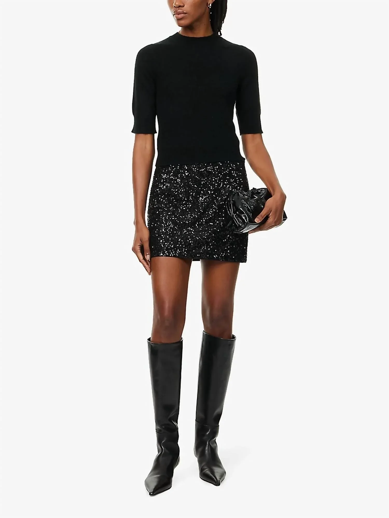 Заправьте любимую футболку для более непринужденного образа. Мини-юбка с пайетками от FRAME - это эффектная вещь, идеально подходящая для вечернего мероприятия или празднования Нового года. Эта мини-юбка яркого черного цвета украшена пайетками по всей поверхности, изготовлена из 100% полиэстера с гладкой подкладкой для комфорта. Произведенная в Турции, она имеет облегающий крой и эластичный пояс, обеспечивающий легкую эластичность и удобство надевания. Для сохранения ее эффектного вида рекомендуется только химчистка.