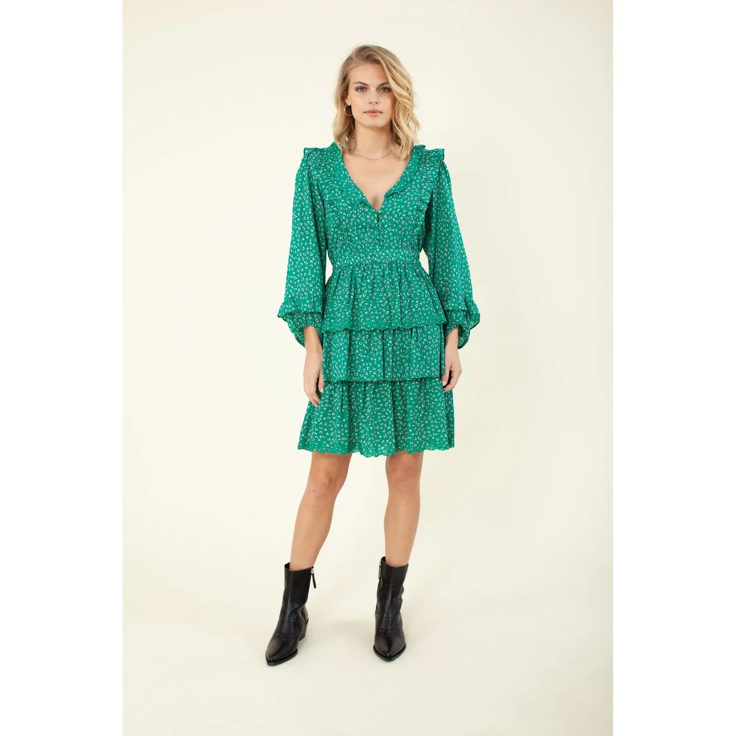 Многоярусное платье с принтом