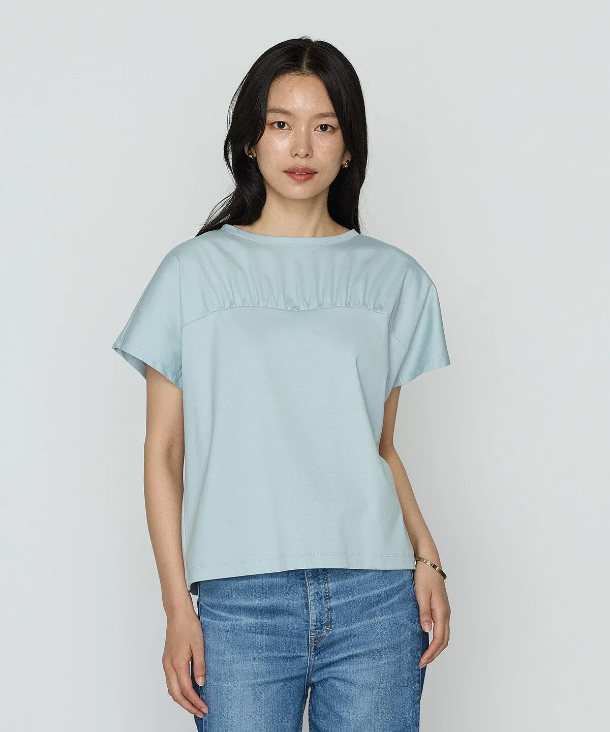 Этот топ в стиле бюстье украшен акцентами и сборками из ткани в тон.