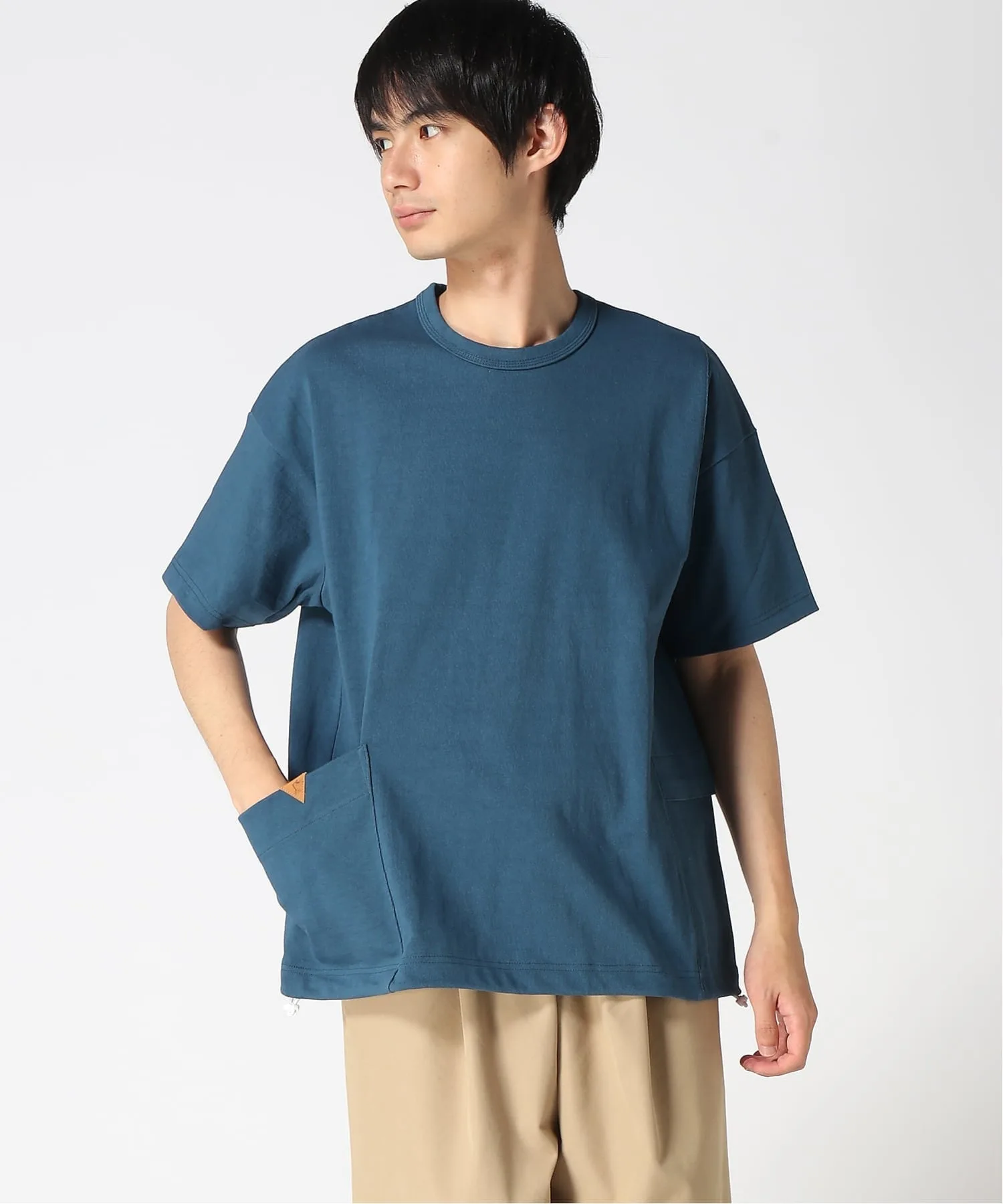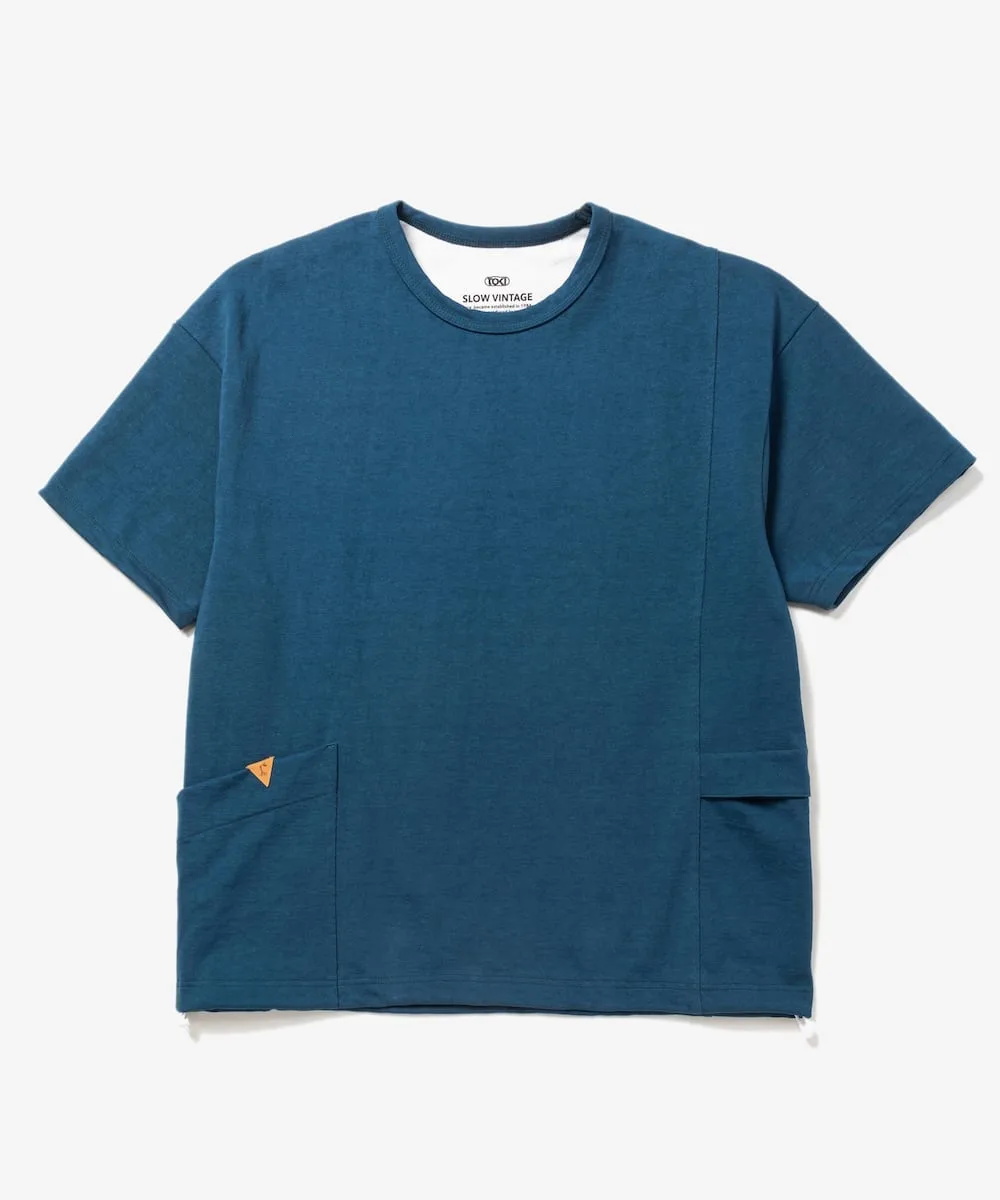 Этот плотный трикотаж изготовлен на старинной петлевой вязальной машине в Вакаяме и известен своей прочностью. Плотная ткань непрозрачна даже при ношении в одиночку и хорошо сохраняет форму даже при длительной носке. Материал имеет слегка неоднородную текстуру, что придает ему характерный вид. Вязание с обеих сторон предотвращает образование складок и перекручиваний, а завершающим этапом является фиксация ткани с помощью барабана, чтобы предотвратить потерю формы.