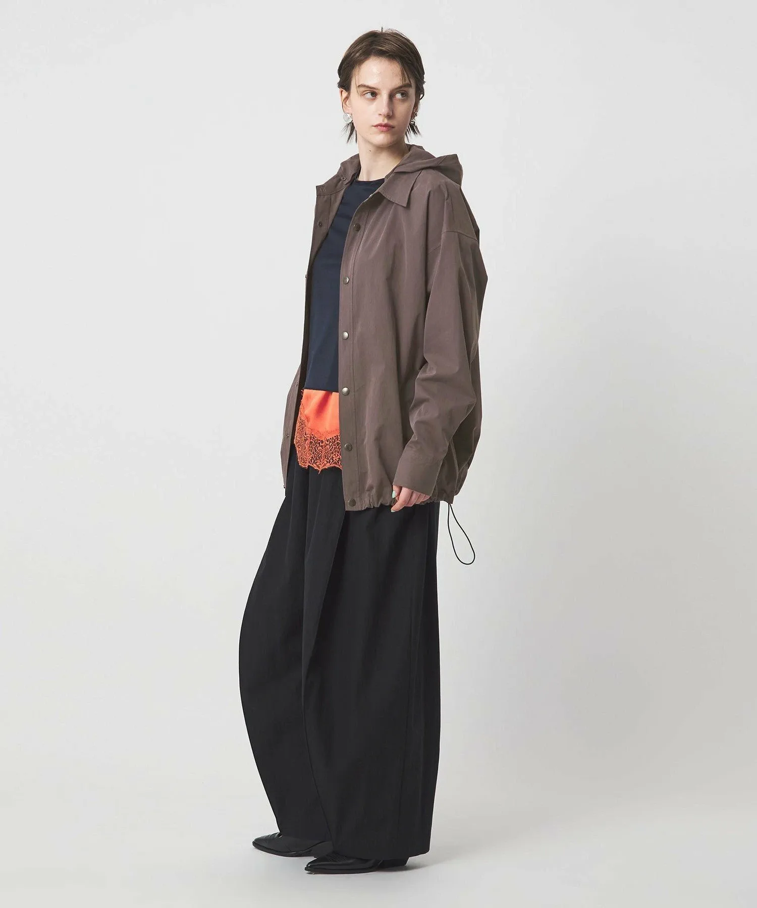 Застежки-кнопки и шнуровка по низу придают ей вид верхней одежды.