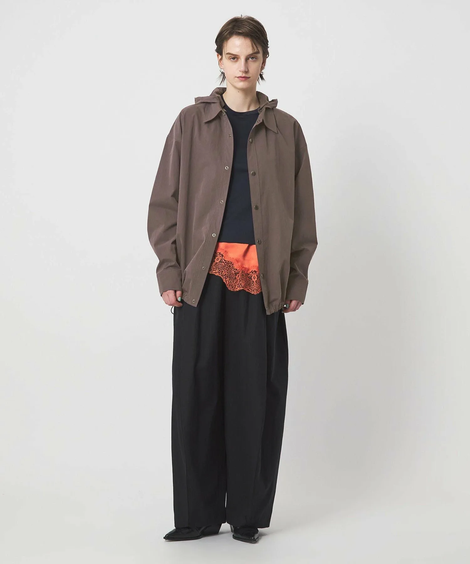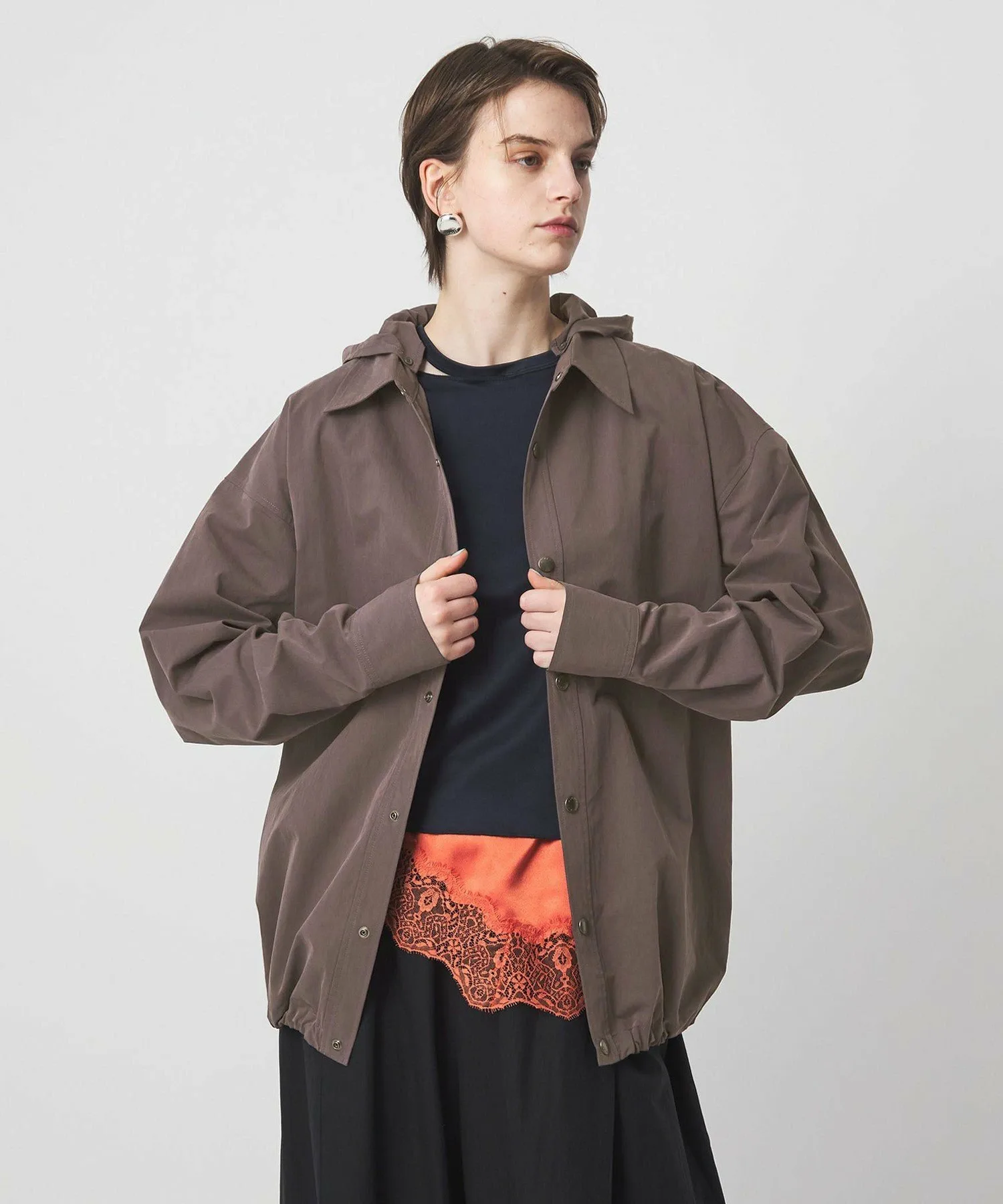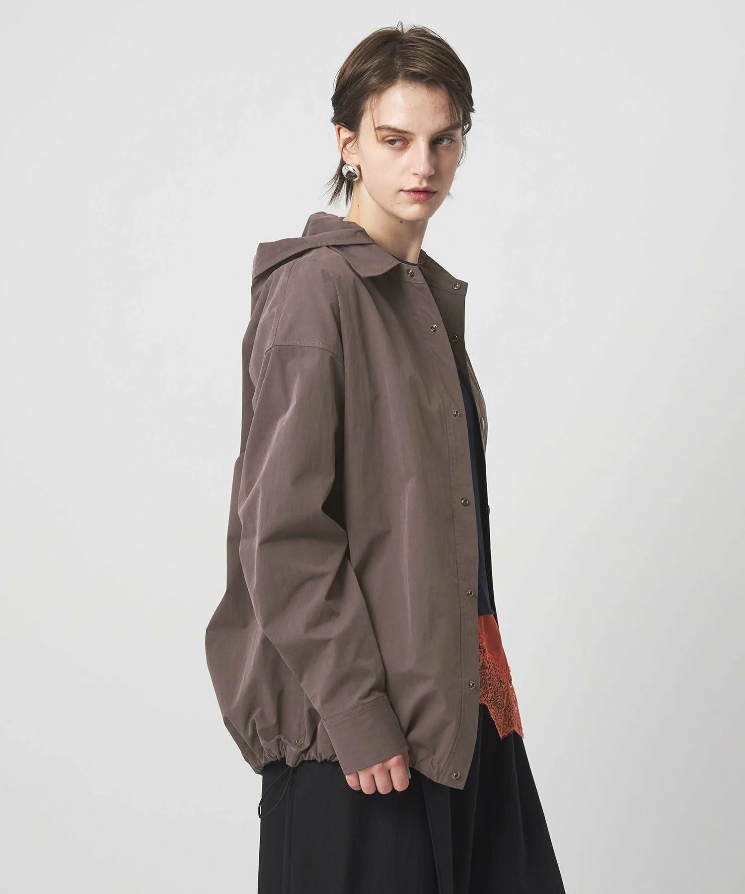 Рубашка свободного силуэта с дизайном, позволяющим убрать капюшон внутрь.