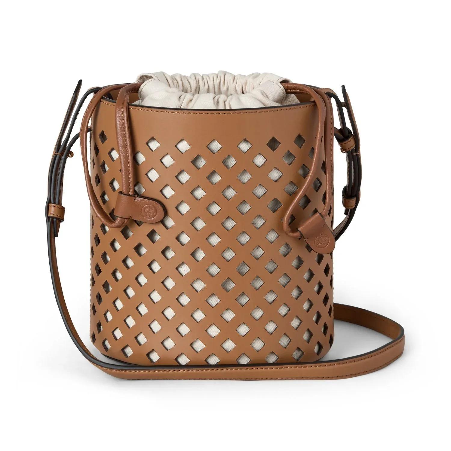 Вдохновленная традиционными британскими теплицами и украшенная замысловатым узором в виде решетки, вырезанной ножом и демонстрирующей изысканное мастерство наших ремесленников, эта перфорированная сумка-ведро идеально подходит для летних месяцев и создана для активного образа жизни.