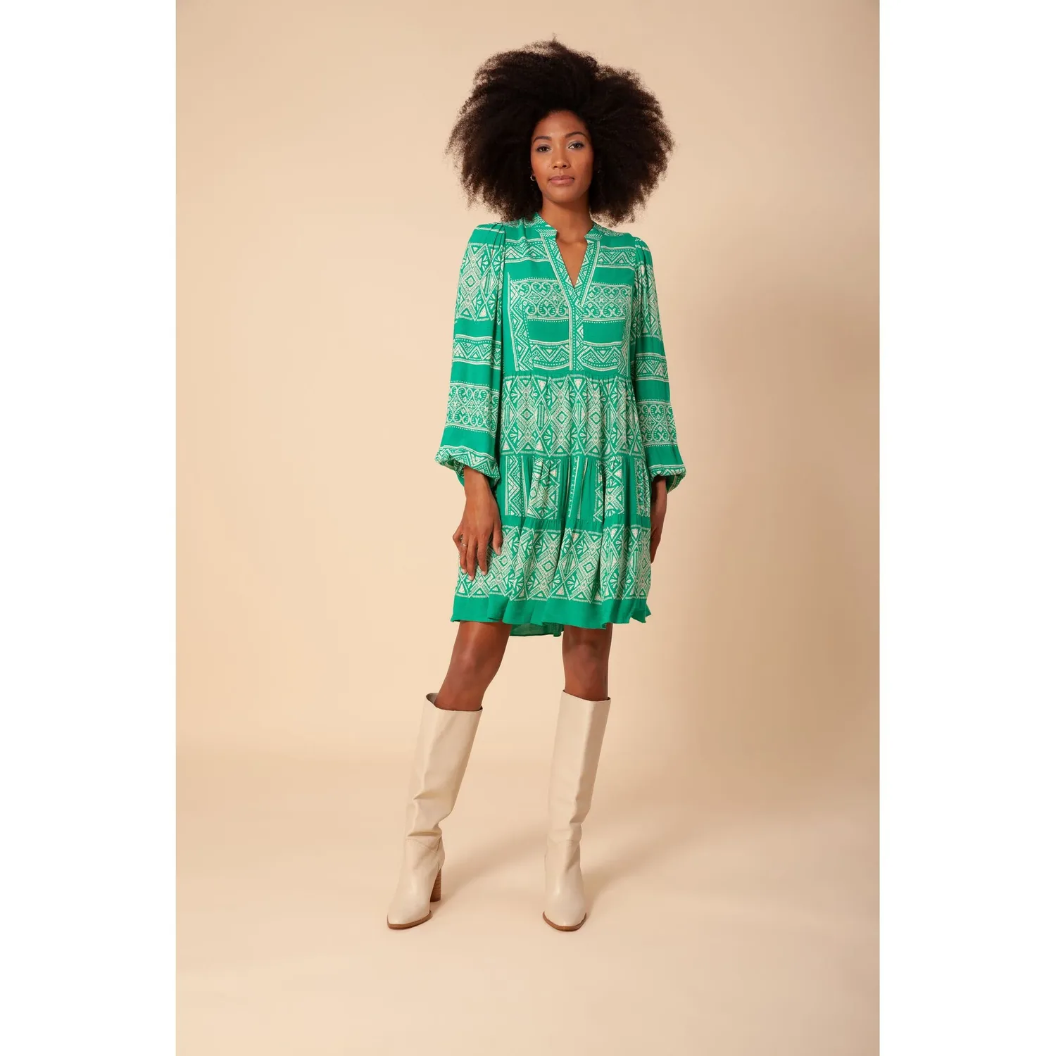 Платье с длинными рукавами и ярусным кроем