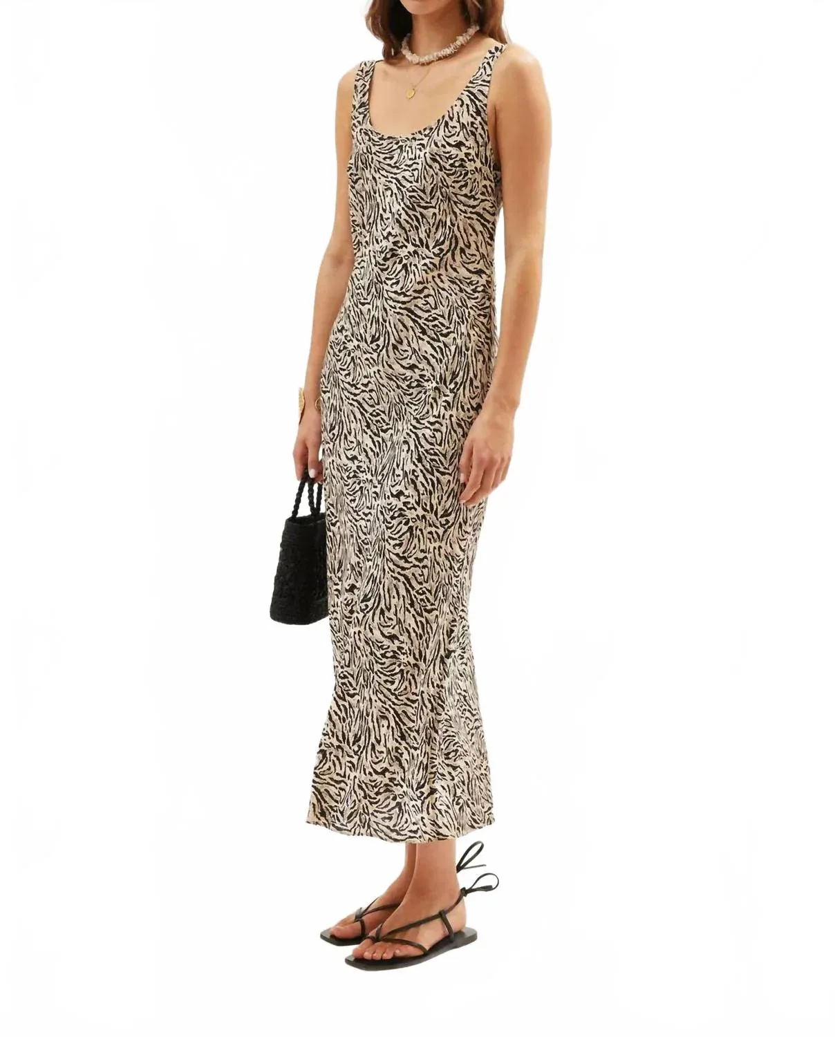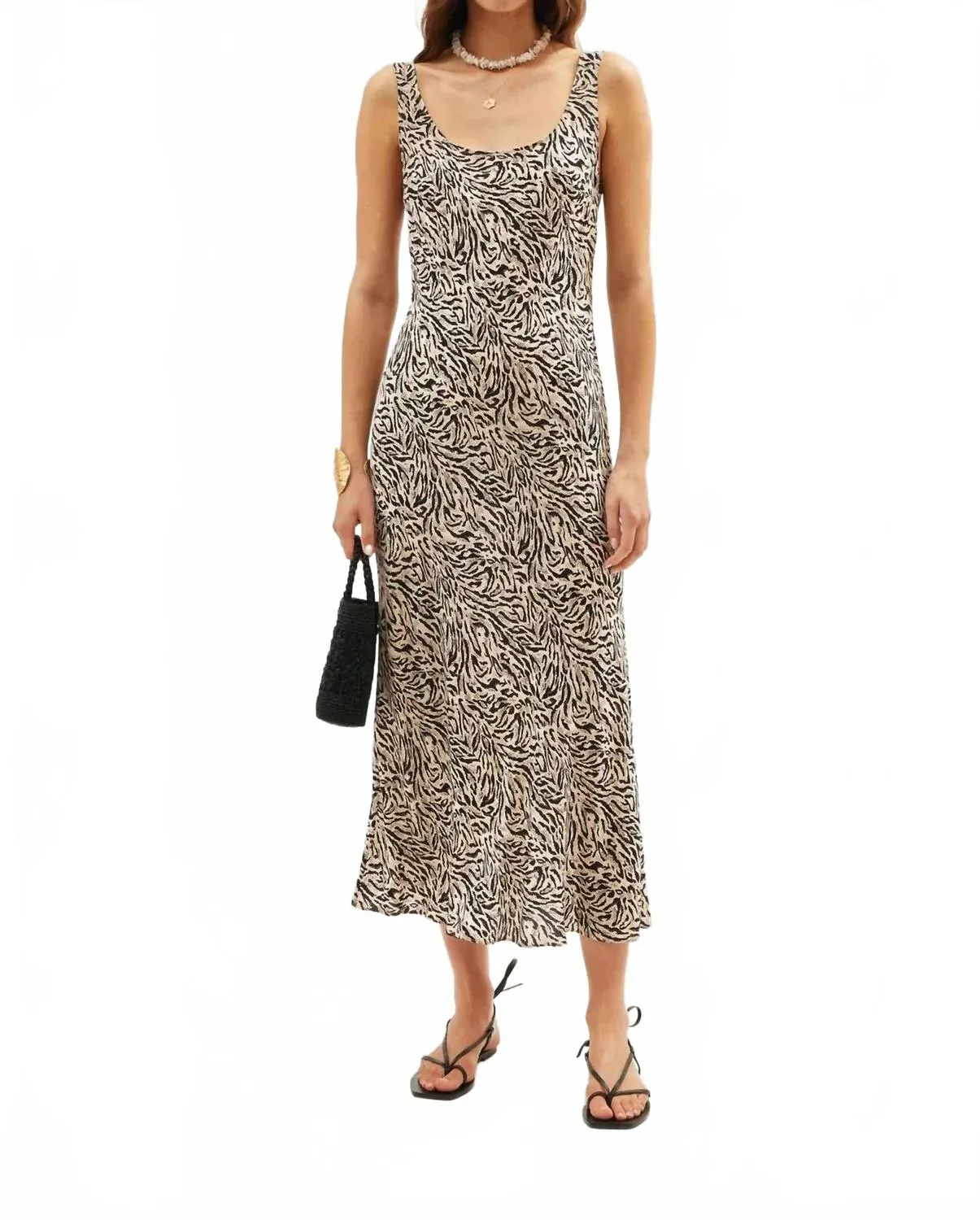 Идеальное платье с длинными рукавами для прохладных месяцев. Ощутите непринужденную элегантность с платьем Bondi от RIXO в цвете Sun Leo Tan. Это платье без рукавов из роскошной вискозы создает изящный и привлекательный силуэт благодаря фирменному косому крою и вырезу-лодочке. Длина миди и открытая спинка, позволяющая носить бюстгальтер, делают его идеальным для летнего отдыха, а анималистический принт придает ему стильный, максималистский вид. Застежка - надевается без застежки. Идеально подходит для женщин, которые ценят комфорт и эффектный образ.