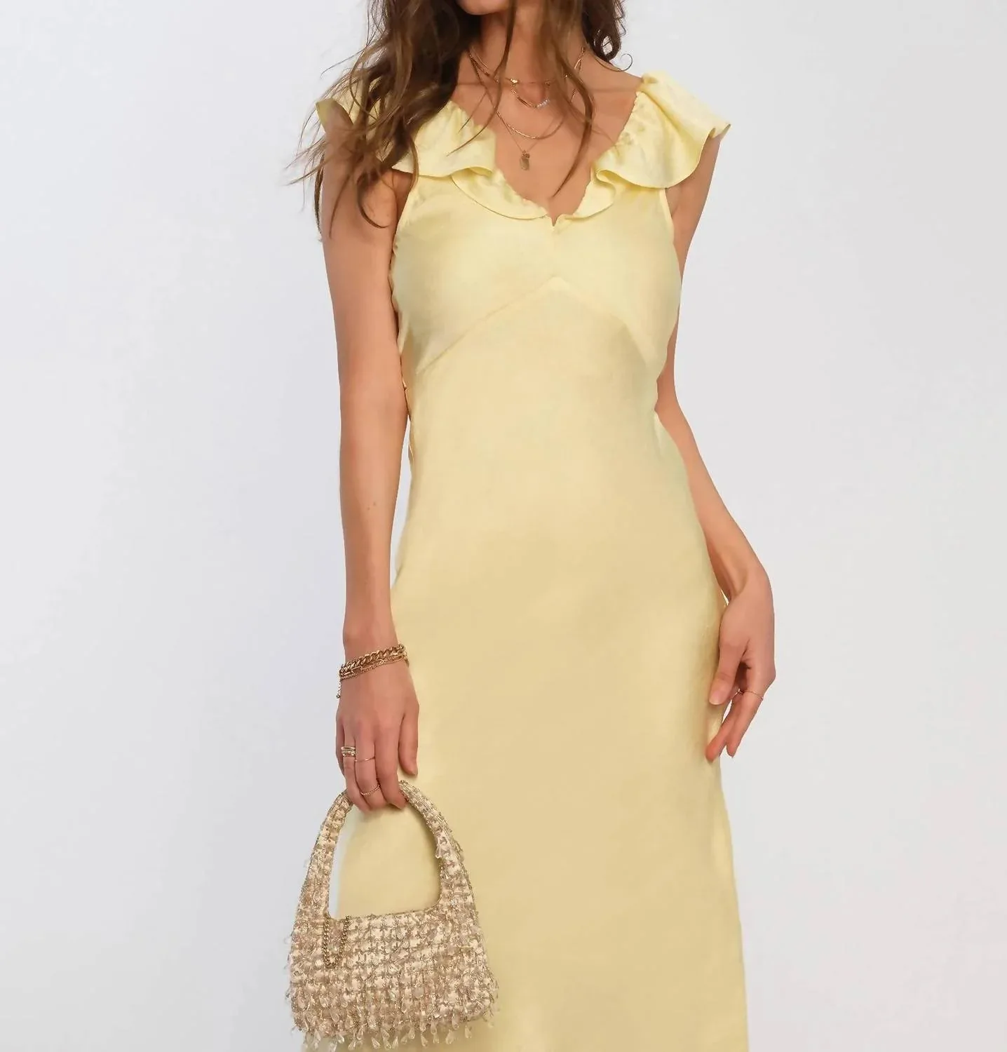 Ощутите элегантность в ярком лимонном оттенке. Платье-футляр без рукавов сшито из нашего мягчайшего атласа с эффектом чеканки, создавая льстящий фигуре силуэт, подчеркнутый швами на груди и изящной оборкой на шее. Длина от самой высокой точки плеча - 51 дюйм. Платье имеет шикарный силуэт миди и застегивается на молнию. Изготовлено из 100% полиэстера. Для сохранения стиля и изысканности рекомендуется химчистка.