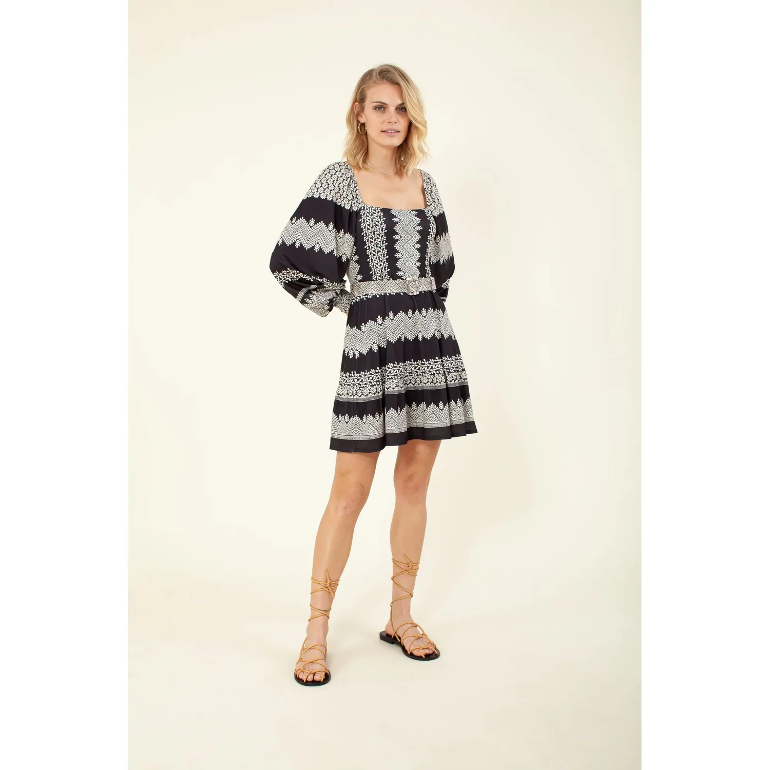 Платье с длинными рукавами и поясом