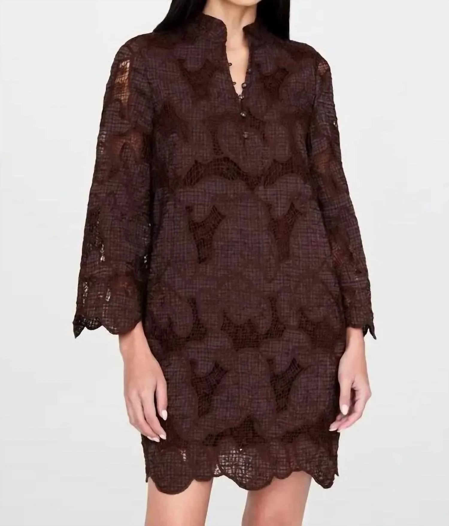 Идеальное платье с длинными рукавами для прохладных месяцев. Откройте для себя платье Marie Oliver Kirsten насыщенного цвета «Ява», созданное для того, чтобы подчеркнуть вневременную элегантность благодаря длинным рукавам-колоколам с фестончатым краем. Это изысканное изделие сочетает в себе 44% льна и 56% вискозы, имеет силуэт рубашки со стильной застежкой на пуговицы и воротником-стойкой. Платье отделано кружевной тканью с вырезами, частично имеет подкладку для комфорта и сшито без карманов. Для сохранения качества рекомендуется химчистка и сушка в разложенном виде, идеально подходит для осеннего сезона.