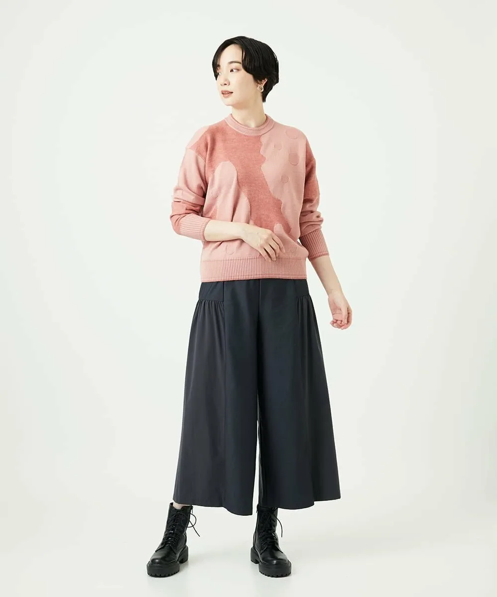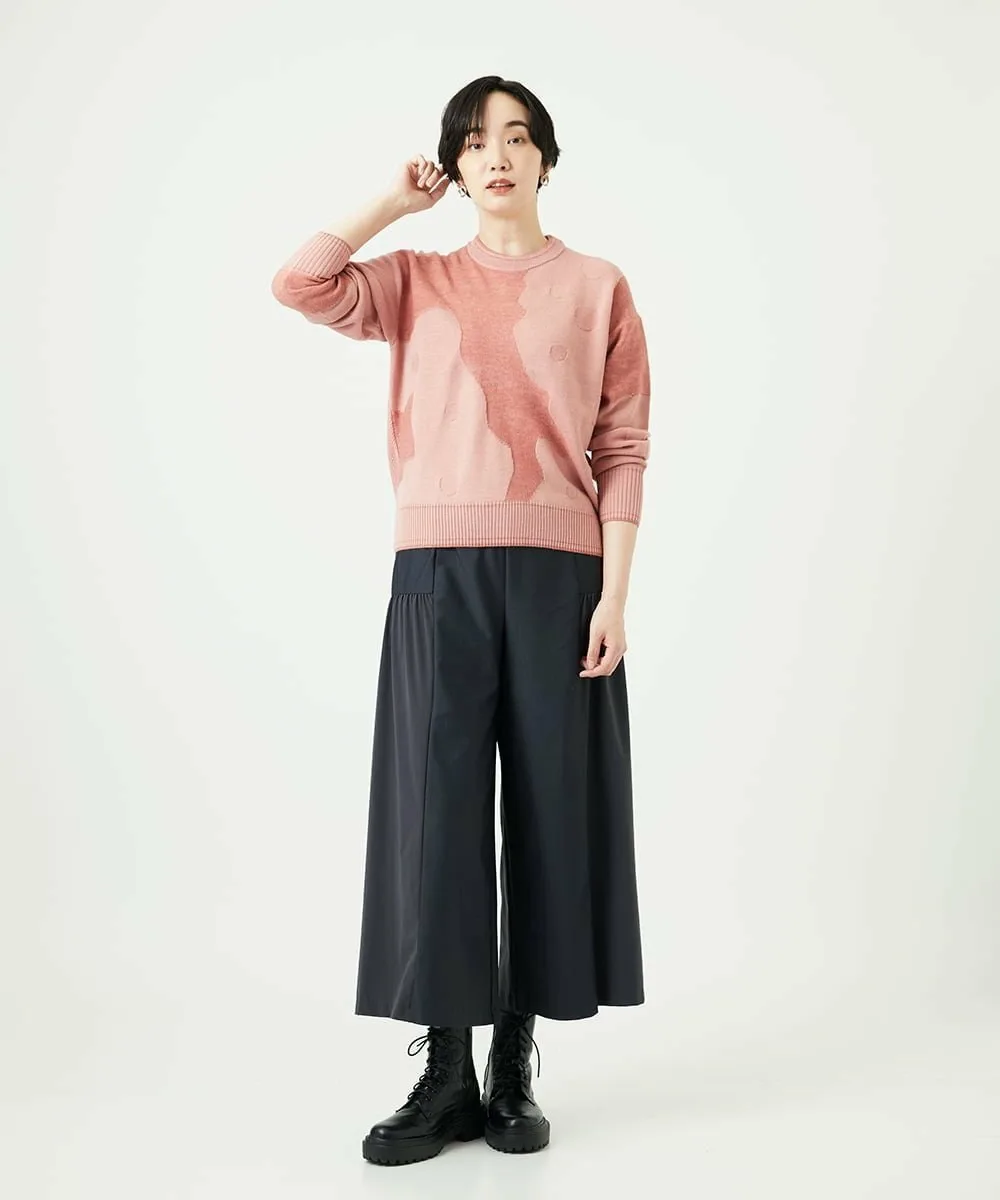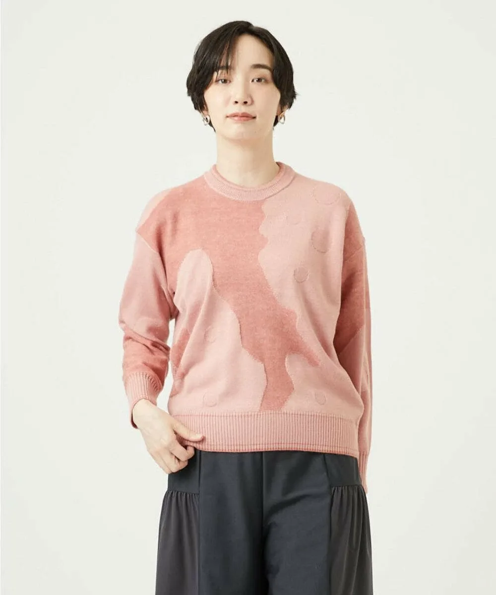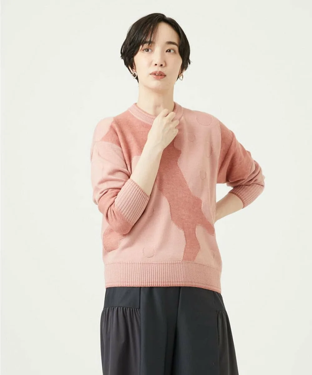 Мотив Итальянского полуострова выполнен в технике интарсии из фактурной пряжи из смеси альпаки. Основа выполнена из камвольной пряжи, дополненной жаккардовым узором в горошек. Силуэт не слишком большой, что делает этот высококачественный трикотаж подходящим для повседневной носки.