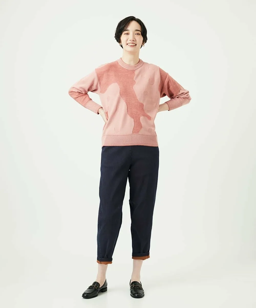 Простой силуэт позволяет легко сочетать его с брюками или юбками. Его можно носить как самостоятельно, так и заправлять под пальто для комфортной посадки. Этот универсальный трикотаж идеально подходит для самых разных случаев, от ранней осени до зимы. Юмористический узор «Итальянский полуостров» обязательно привлечет ваше внимание.
