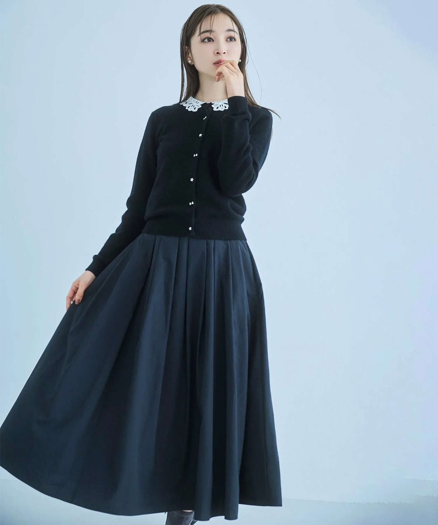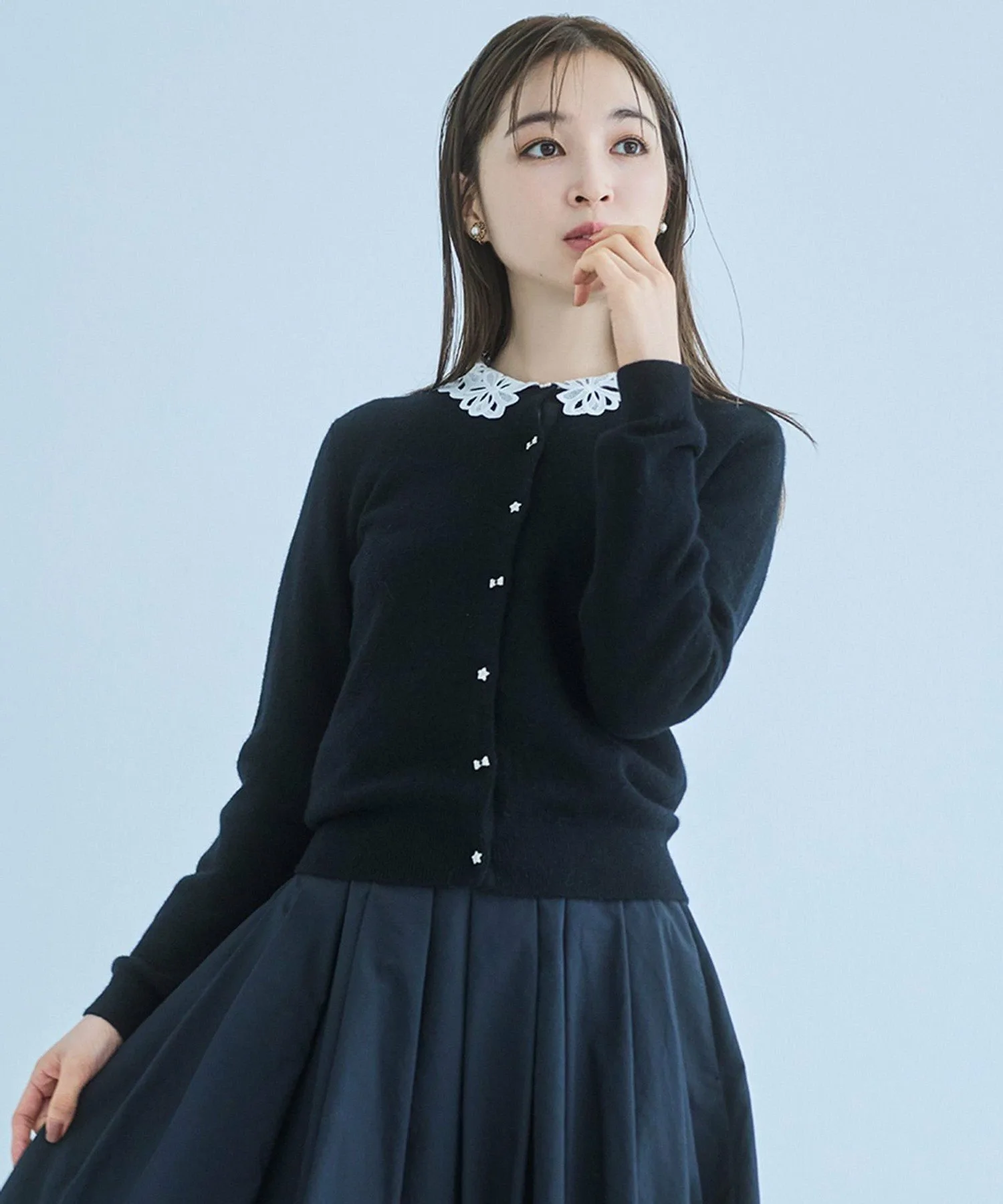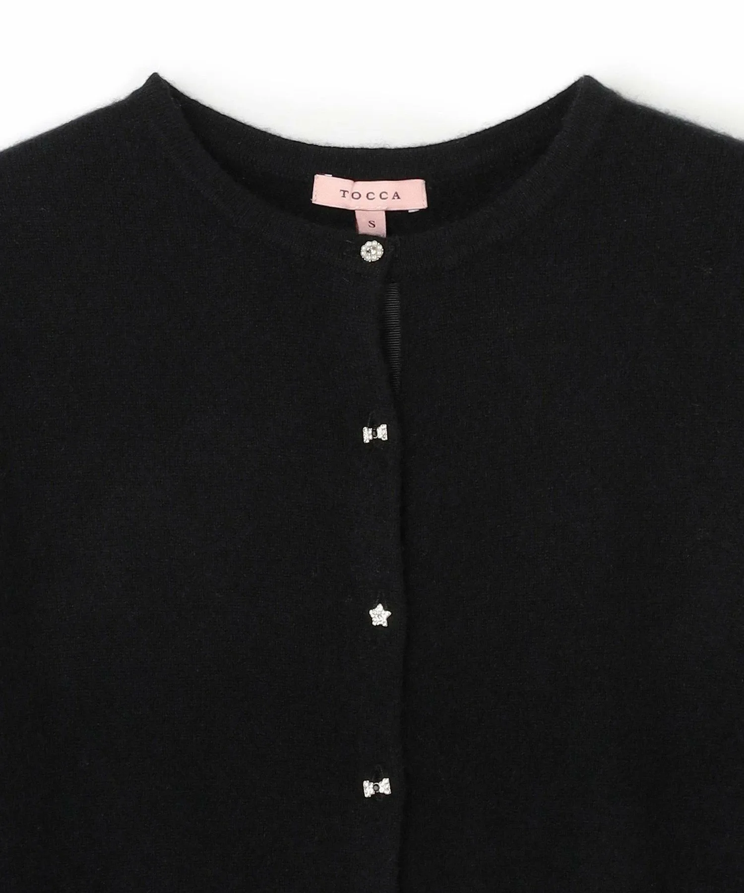 Его мягкость и обволакивающее ощущение – восхитительное. Изготовленный из кашемира, он исключительно комфортен, даже на ощупь. Еще один плюс – его легко стирать дома. Новинка этого года – оригинальные пуговицы с драгоценными камнями, украшенные лентами и звездами, добавляющие нотку утонченной элегантности и игривости. Идеально подходящий для самых разных случаев, от перехода между сезонами до зимней прохлады, кашемировый кардиган TOCCA – это вневременная классика, сочетающая в себе изысканность и комфорт, подобающие утонченной женщине. Также доступно болеро из того же материала.