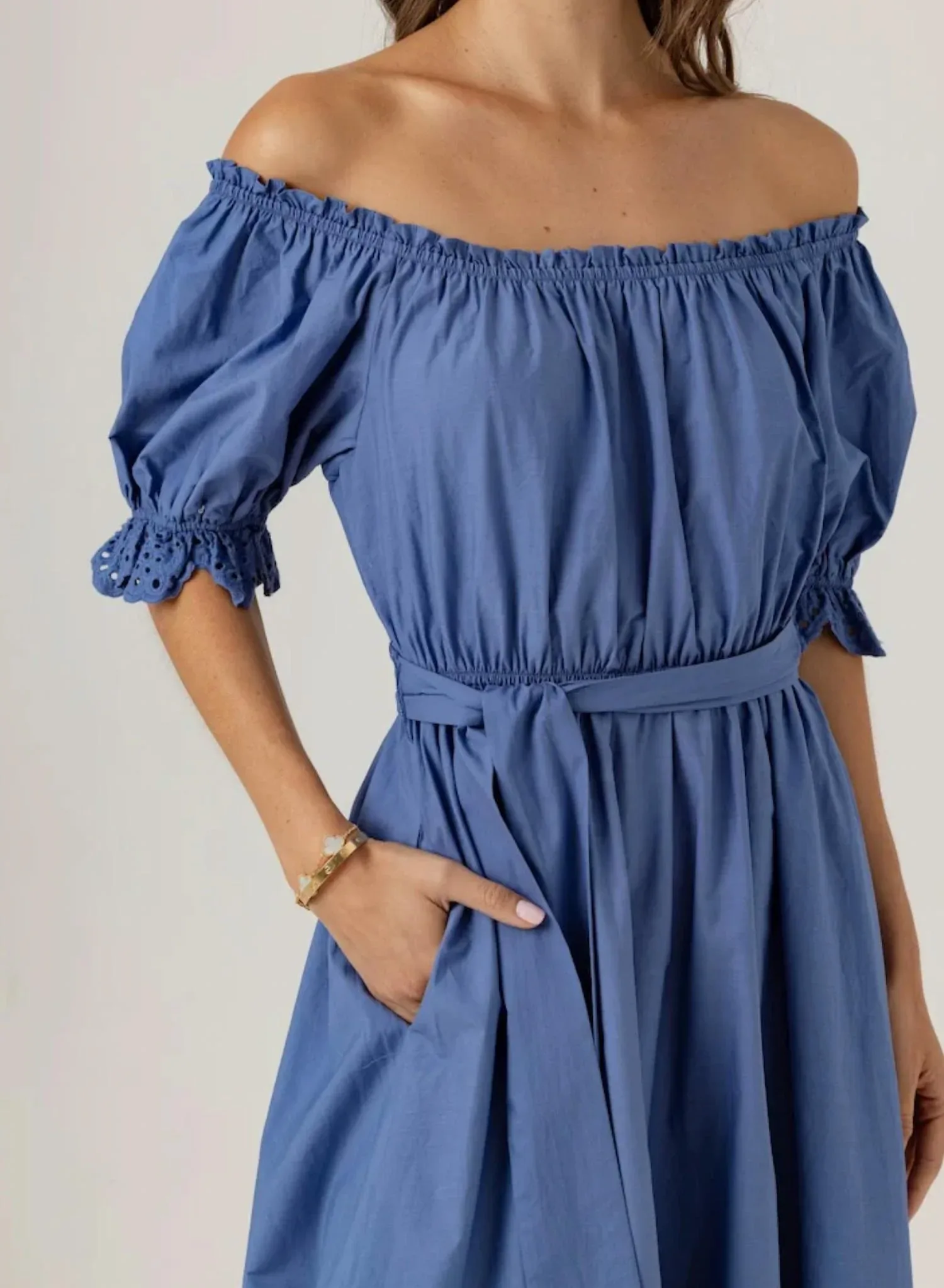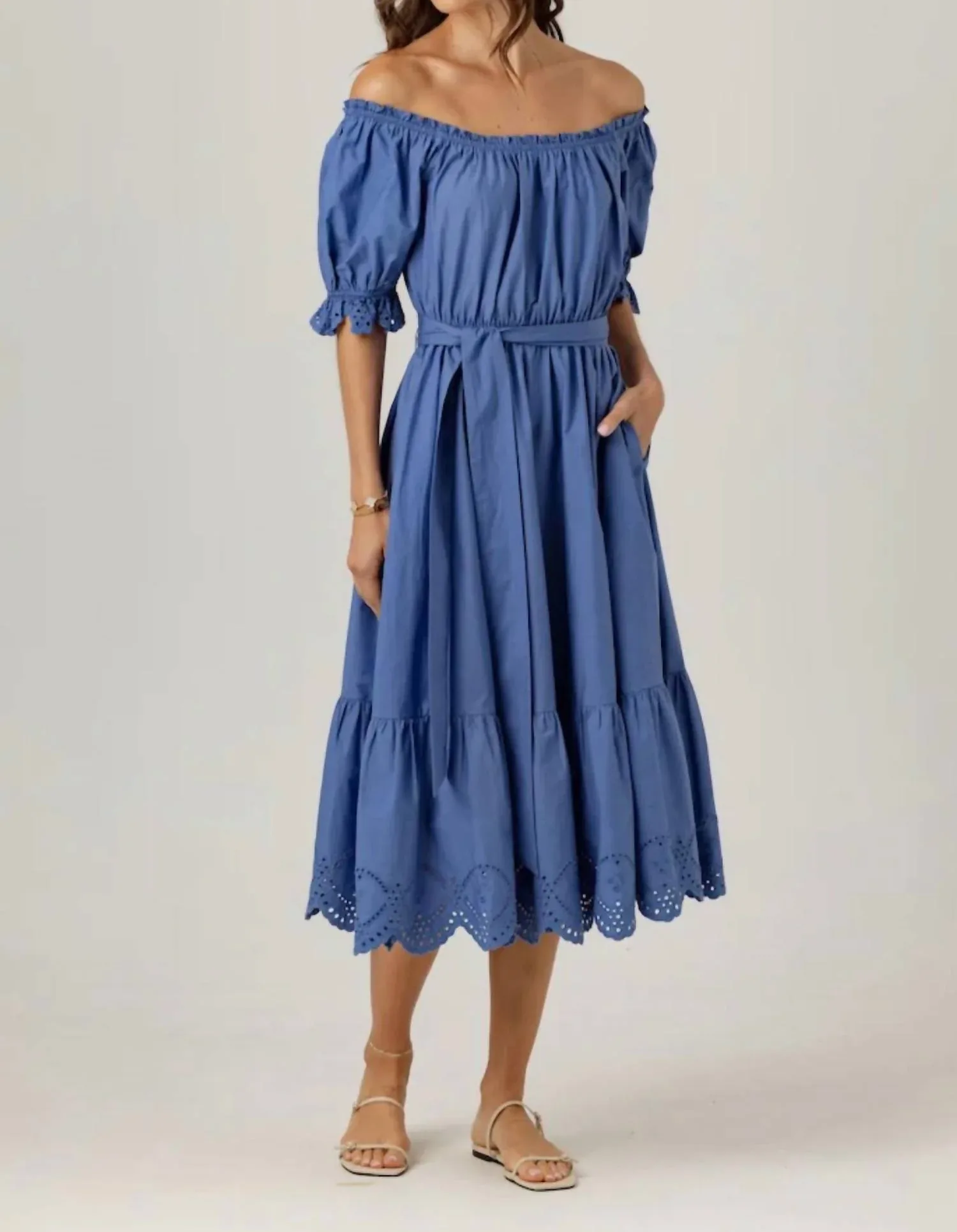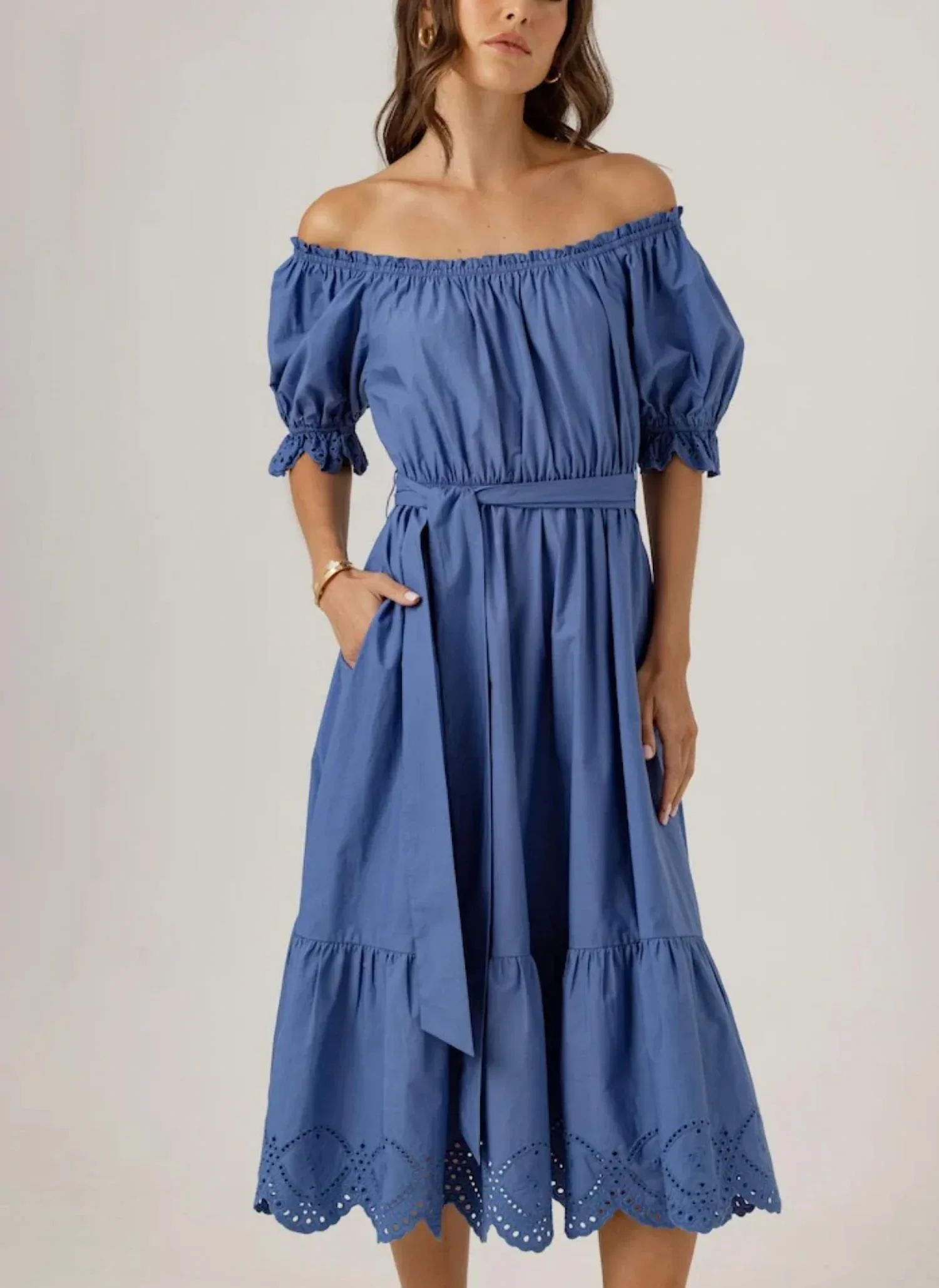 Сочетайте с любимыми сандалиями для создания непринужденно шикарного образа. Представляем платье Meline от Sundays - женственную базовую вещь, воплощающую элегантность бохо-шика. Это платье с короткими рукавами изготовлено из 100% хлопка, обеспечивая комфорт и воздухопроницаемость для весенних мероприятий. Оно имеет универсальный вырез на плечах с фестончатыми краями и замысловатой вышивкой, подчеркивающей силуэт с завышенной талией. Застежка - простая, надевается через голову, а также имеются карманы для дополнительного удобства. Длина платья чуть выше щиколотки обеспечивает непринужденно элегантный вид для любой праздничной вечеринки.