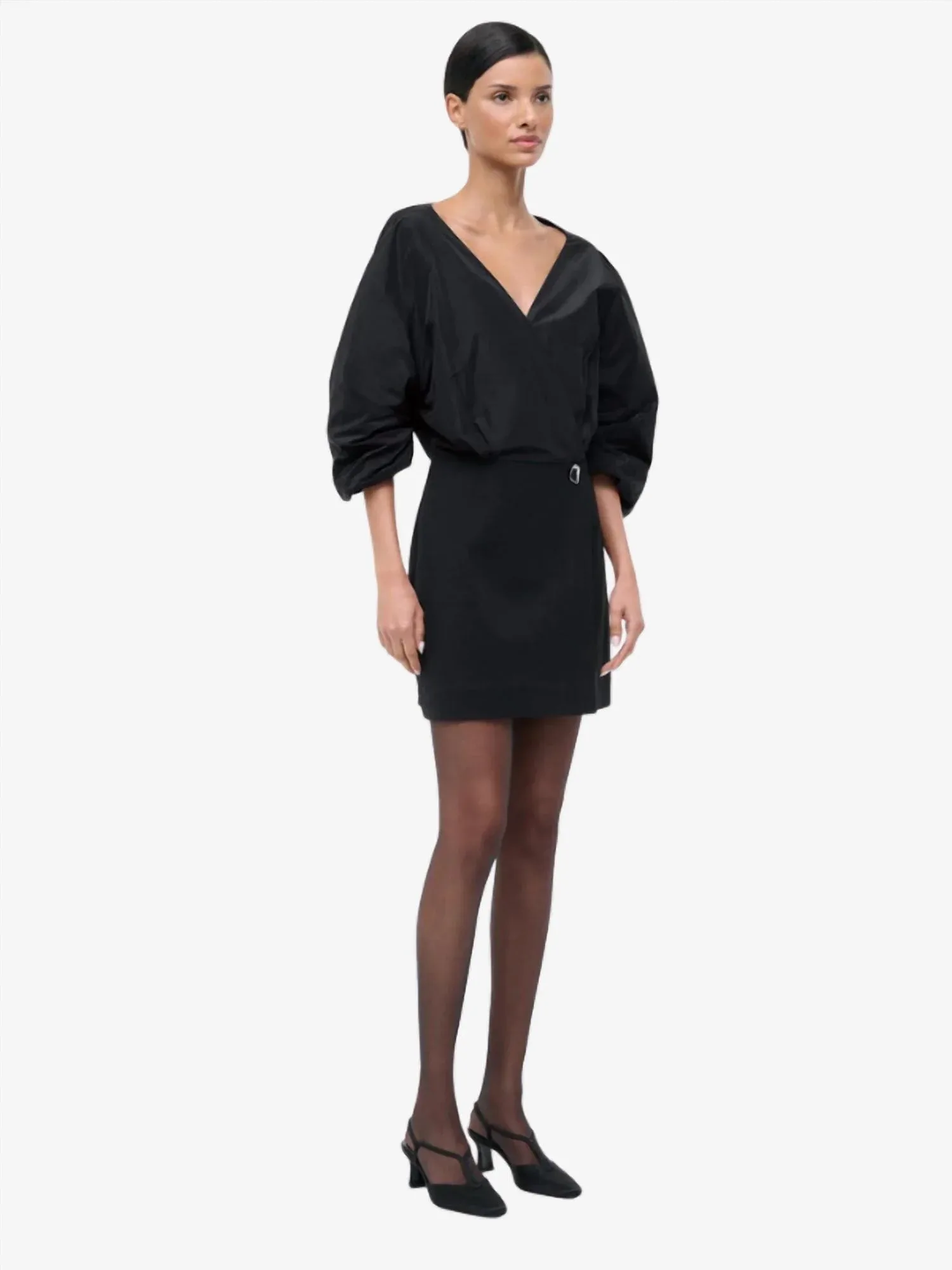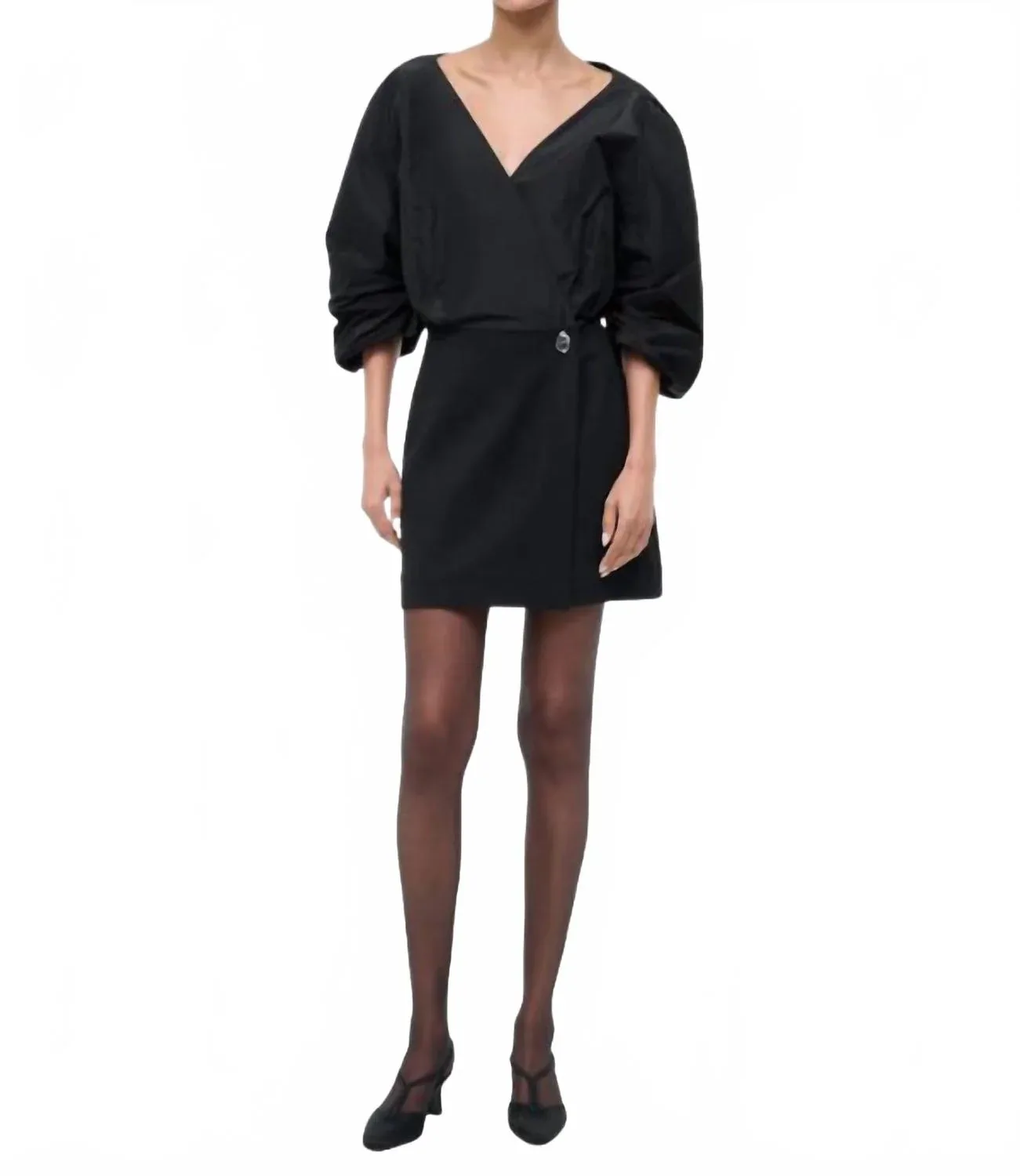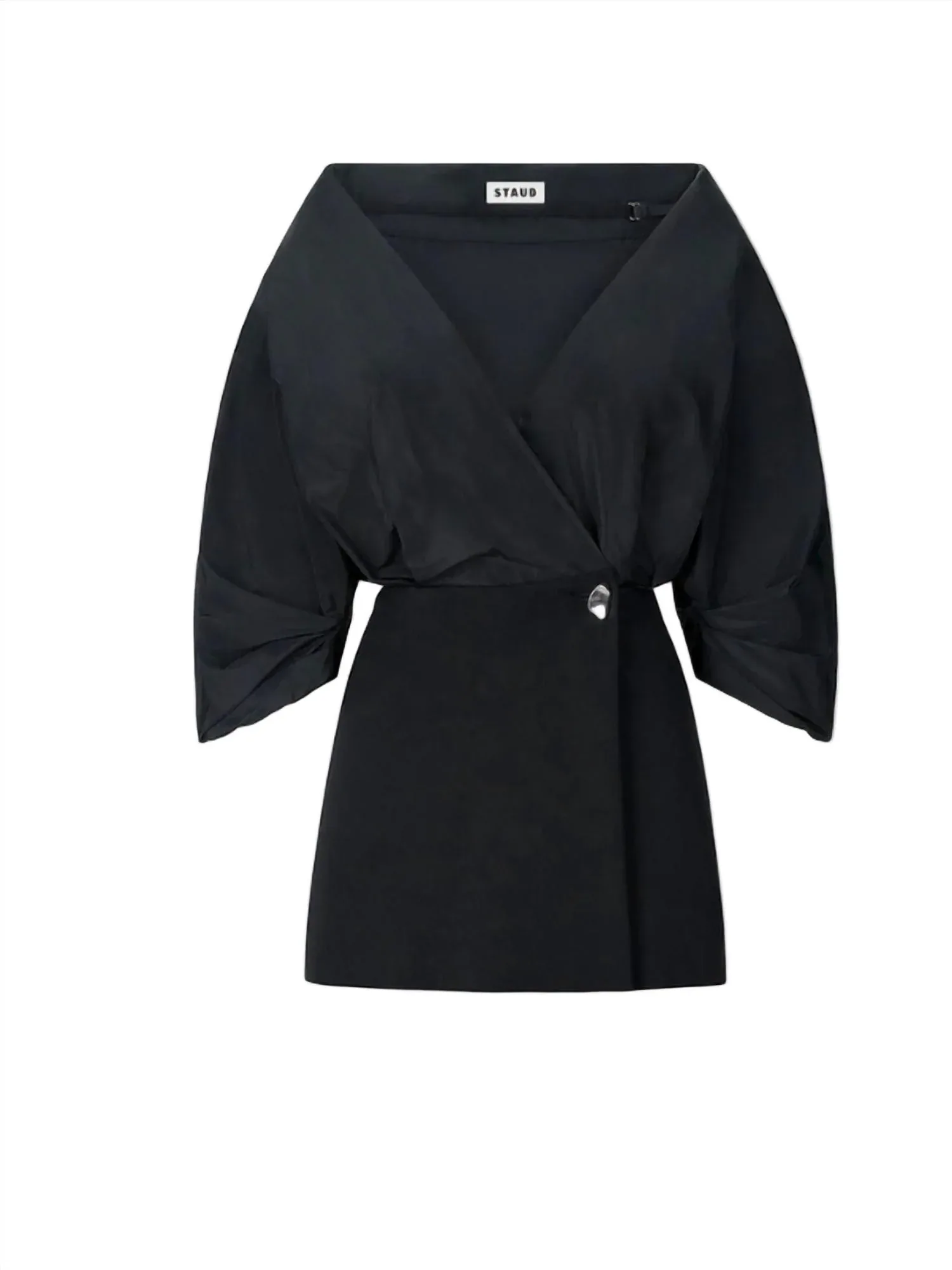 Идеальное мини-платье для теплых месяцев. Представляем платье Orion от STAUD - минималистичный вариант для коктейльных вечеринок в классическом черном цвете. Это мини-платье с запахом имеет скульптурные рукава три четверти и глубокий V-образный вырез, выполненные из роскошной смеси тафты и понте. Состав: 100% полиэстер, из которых 67% - вискоза, 29% - нейлон и 4% - эластан. Застежка: пуговицы. Страна происхождения: импорт. Уход: только химчистка. Идеально подходит для осеннего сезона, добавит изысканности любому мероприятию.