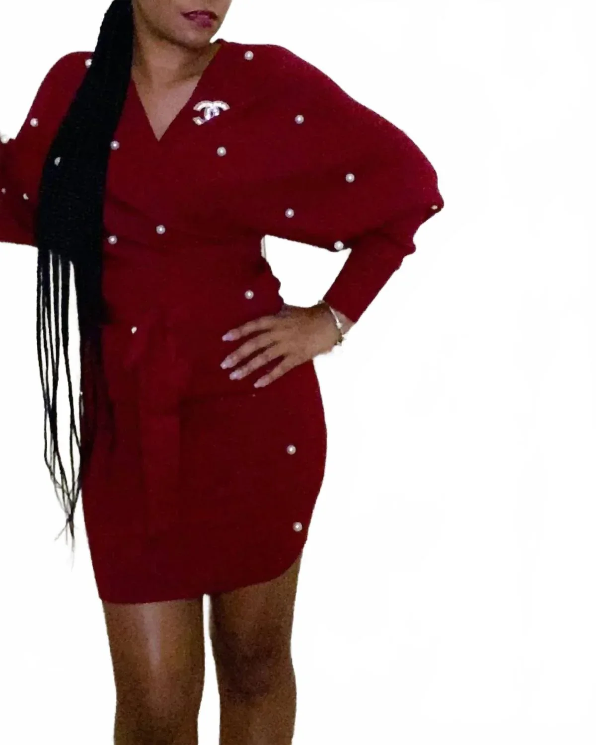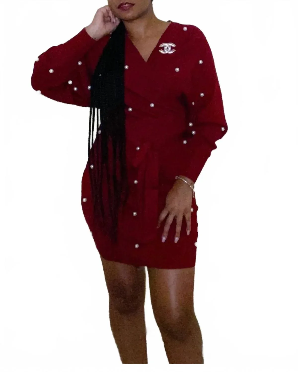 Идеальное платье с длинными рукавами для прохладных месяцев. Представляем платье Pearl Me от JBLA - изысканное платье клюквенного цвета, созданное специально для вашего следующего вечернего выхода. Платье с длинными рукавами, фактурным силуэтом и облегающим силуэтом воплощает в себе сдержанную роскошь благодаря комфортной хлопковой ткани. Эта универсальная модель включает пояс для индивидуальной укладки вокруг V-образного выреза. Доступные размеры: S (2-4), M (6-8) и L (8-11). Инструкции по уходу не требуются.