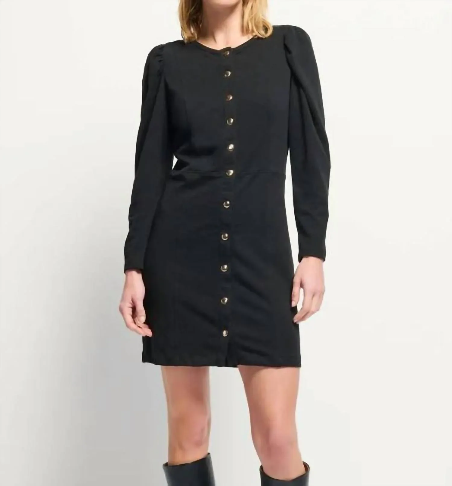 Милое и удобное платье с длинными рукавами обладает всем необходимым. Представляем платье Rae Placket Front Dress от Nation LTD - шикарную и универсальную вещь в однотонном черном цвете. Это платье имеет длинные рукава с небольшими пышными плечами, силуэт «футляр» и привлекательный круглый вырез, украшенный фирменными золотыми кнопками. Изготовленное из высококачественного хлопка, оно родом из Порт-Элизабет и предлагает непринужденный стиль и удобную посадку. Уход - машинная стирка. Это потрясающее платье, предназначенное для женщин, не имеет карманов.