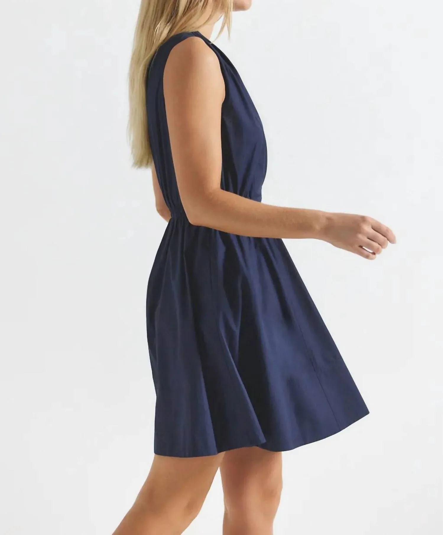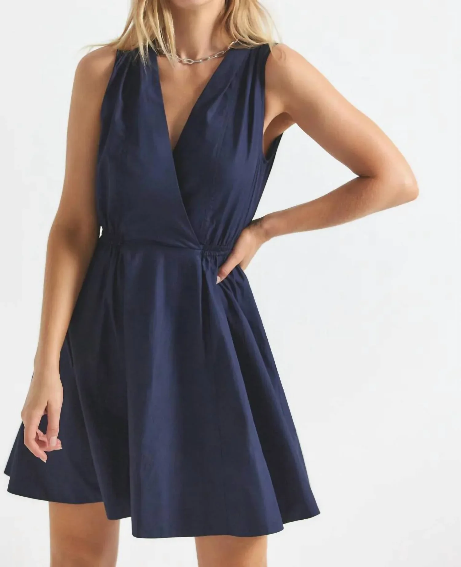 Идеальное мини-платье для теплых месяцев. Откройте для себя платье Tia от Derek Lam Crosby - шикарное мини-платье в стиле милитари, идеально подходящее для любого случая. Это платье без рукавов, изготовленное из 100% хлопка, имеет привлекательный А-образный силуэт с V-образным вырезом и практичными накладными карманами. Доступное в универсальном темно-синем цвете, оно оснащено удобным эластичным поясом для легкого надевания. Инструкции по уходу не прилагаются, поэтому вы можете выбрать наиболее подходящий для вас способ.