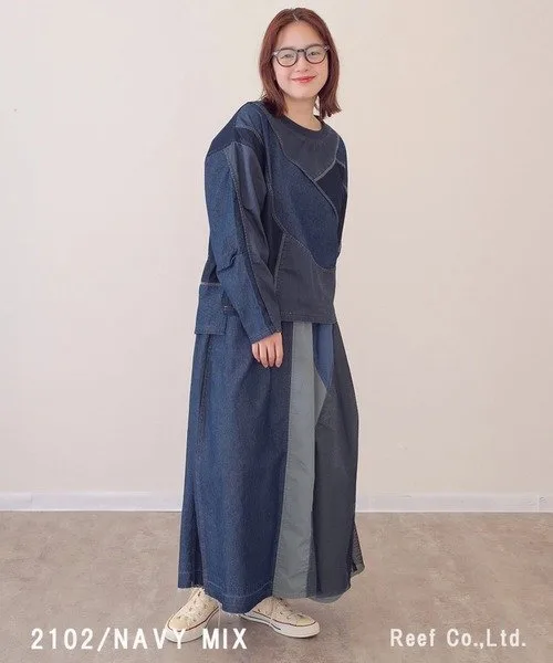 Освежающие сетчатые вставки и окантовка добавляют акцент, создавая ощущение легкости, несмотря на то, что это джинсовая ткань. Силуэт — красивый А-образный, он естественно облегает фигуру. Полностью эластичный пояс также делает ее удобной в носке.