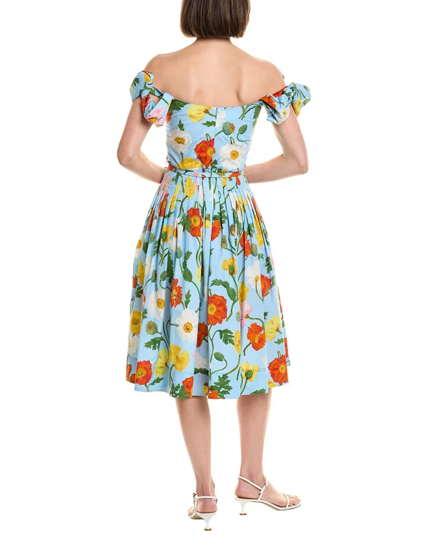 Обновите свой гардероб с помощью платья А-силуэта Oscar de la Renta светло-голубого многоцветного оттенка. Это потрясающее платье имеет банты на плечах, плиссированную юбку, боковые карманы и пояс на талии, создающие привлекательный силуэт. Изготовленное в Италии, это платье выполнено из 97% хлопка и 3% эластана для комфортной посадки. Застежка-молния по центру спины с крючком и петлей обеспечивает надежную фиксацию, а женственный дизайн воплощает вневременную элегантность бренда Oscar de la Renta. Независимо от того, идете ли вы на летнюю свадьбу или на особое мероприятие, это платье А-силуэта обязательно произведет впечатление. Созданное для современной женщины, которая ценит качество и изысканность, это платье станет незаменимым дополнением к вашему гардеробу.