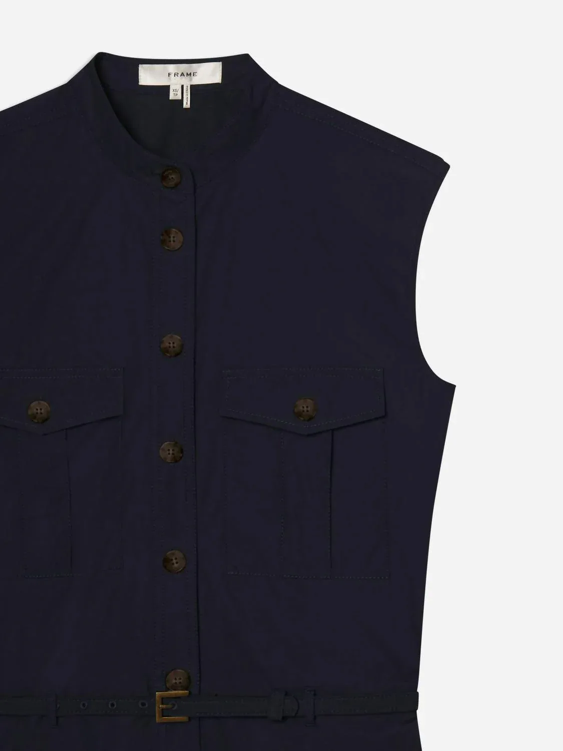 Платье Safari от FRAME - это стильная и практичная вещь в темно-синем цвете, идеально подходящая для минималистичного гардероба в путешествиях. Это платье-футляр без рукавов, изготовленное из 100% хлопка, имеет застежку на пуговицы для удобства надевания. Платье с эффектным круглым вырезом и удобными карманами сочетает в себе элегантность и функциональность. Можно стирать в машине, длина от плеча 34,5 дюйма (86,5 см), что делает его идеальным выбором для весенних приключений.
