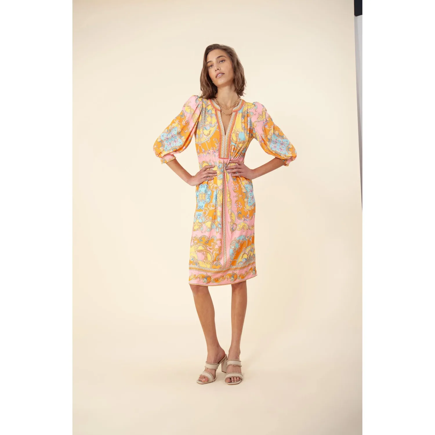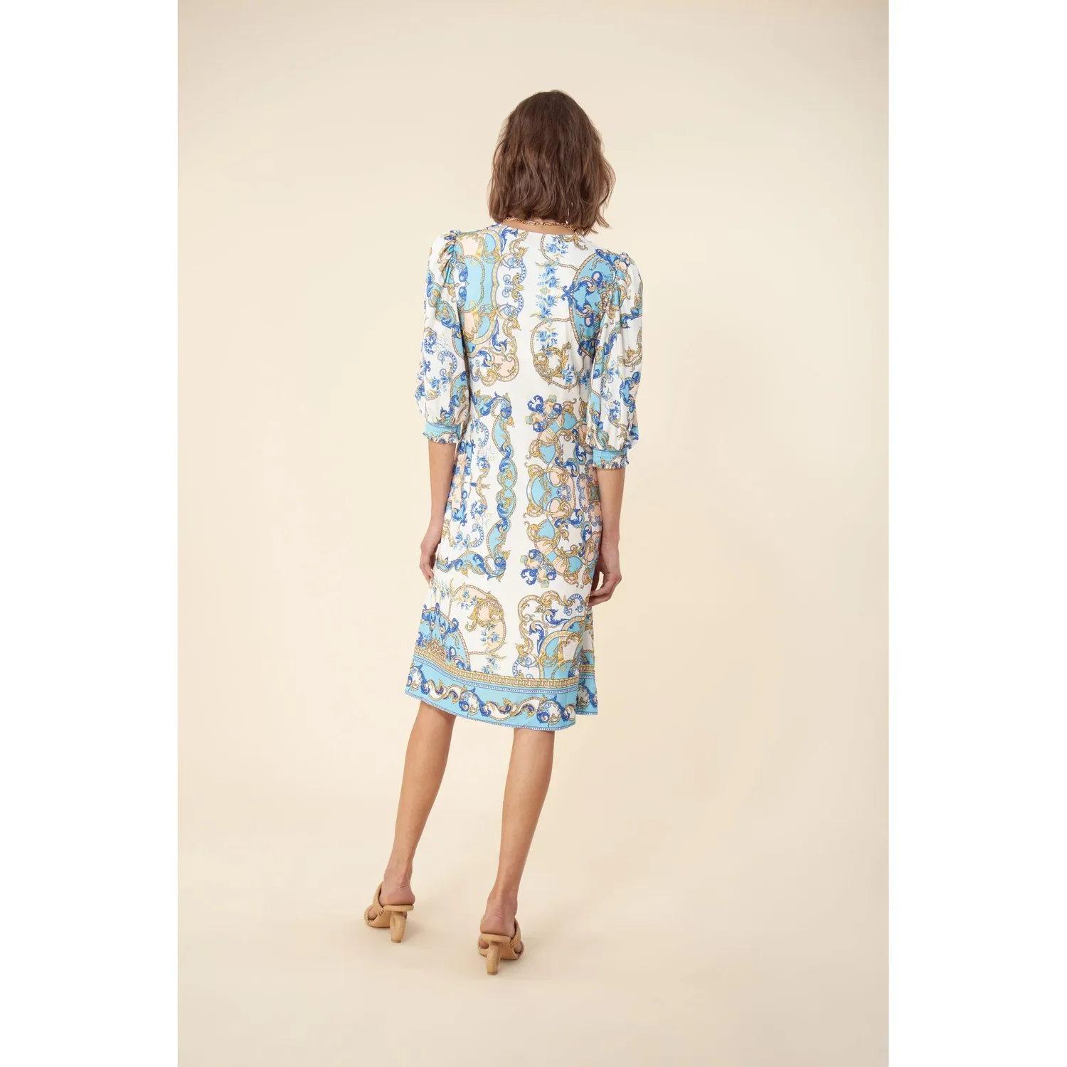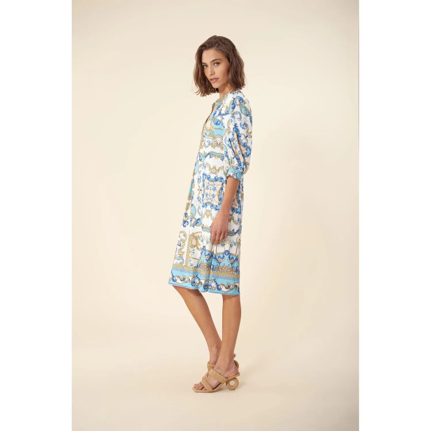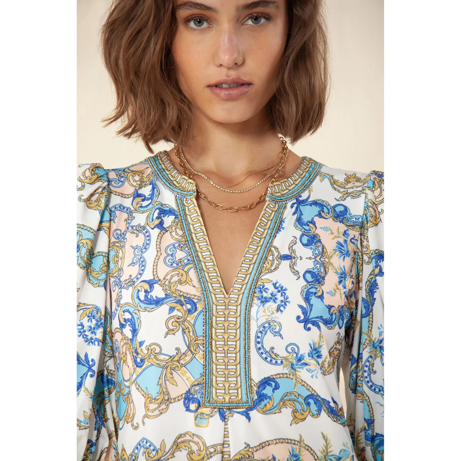 Платье с короткими рукавами и бретелями, расшитое бисером.
