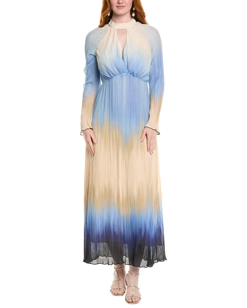 Представляем потрясающее миди-платье SIMKHAI Calina - незаменимый элемент гардероба любой модницы. Это красивое платье отличается пленительным градиентным цветом и плиссированной сетчатой ​​вставкой, которая добавляет элегантности. Вырез-«замочная скважина» и застежка на пуговицы придают платью современный и шикарный вид. Изготовлено из высококачественных материалов: верхняя часть - 93% полиэстер и 7% спандекс, подкладка - 100% полиэстер. Длина платья от плеча до низа составляет приблизительно 57 дюймов (142 см). Платье разработано таким образом, чтобы подчеркнуть достоинства любой фигуры. Идеально подходит для особых случаев или вечеринки, это платье обязательно привлечет внимание. Только химчистка. Импортное производство. Рост модели 175 см, на ней размер 4. Обратите внимание, что размеры могут немного отличаться в зависимости от размера.