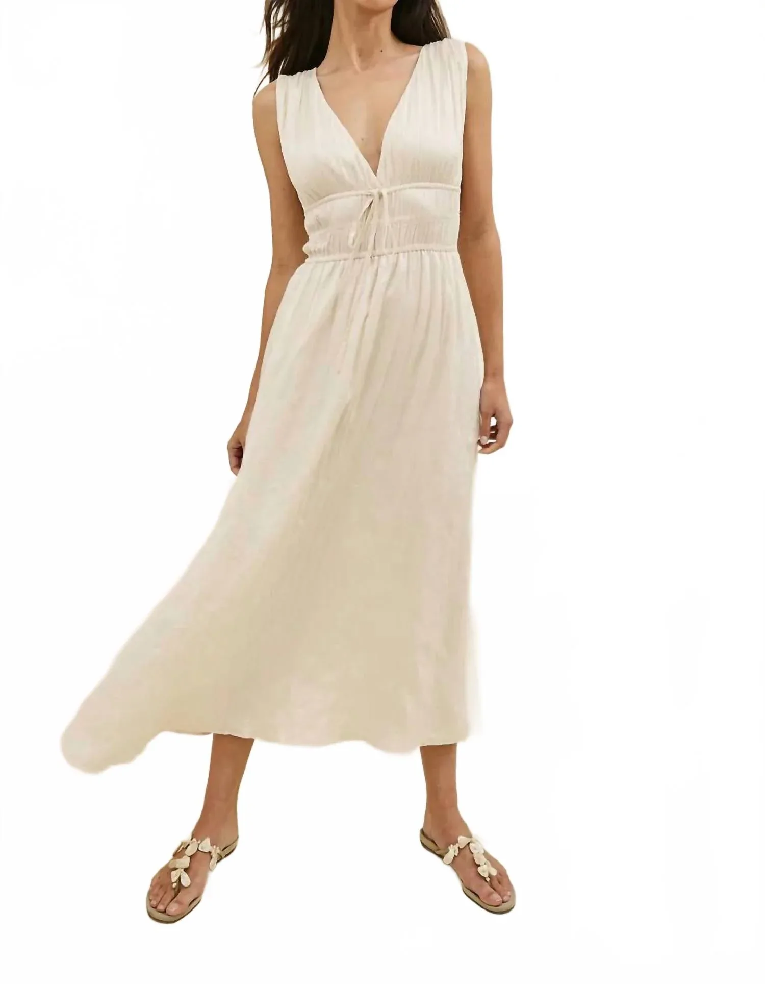 Платье миди настолько универсально, что возможности его ношения безграничны. Представляем платье Lilith Midi от Rails - элегантный выбор для вашей праздничной вечеринки в изысканном однотонном цвете слоновой кости. Это платье без рукавов, созданное с любовью из 100% полиэстера, имеет струящийся А-образный силуэт с глубоким V-образным вырезом. Оно оснащено регулируемой бретелькой на спине для индивидуальной подгонки и имеет длину 51 дюйм (для размера S). Платье застегивается на резинку и требует простого ухода - машинная стирка в холодной воде с вещами аналогичного цвета, сушка на воздухе.