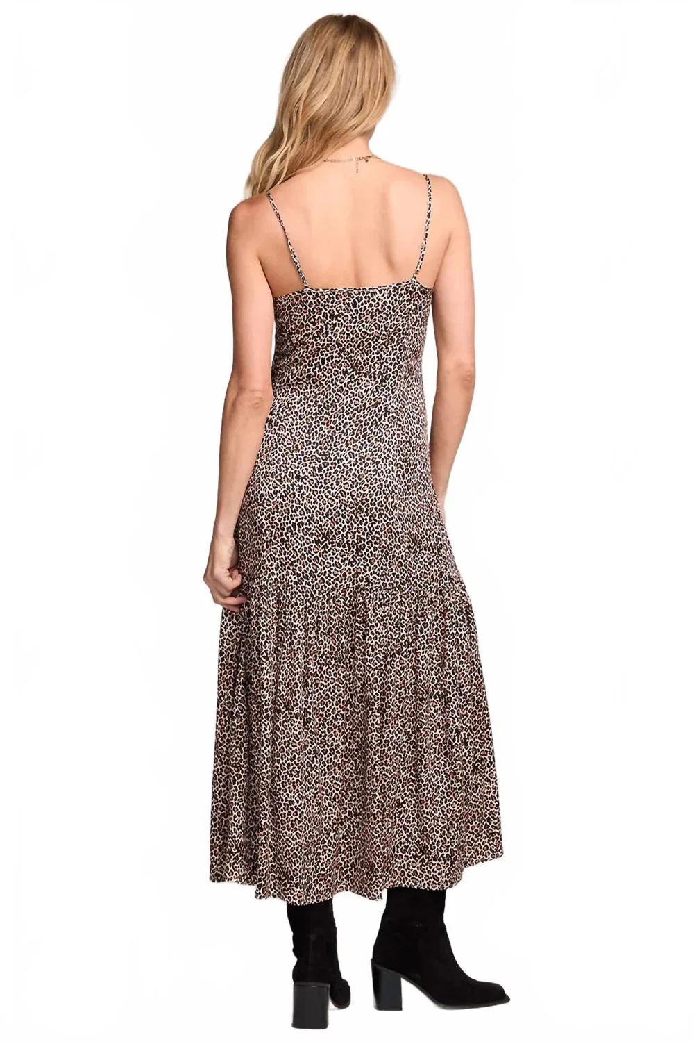 Просто добавьте шлепанцы или мюли, и вы готовы. Представляем платье-миди Marcela от saltwater LUXE - изысканное платье с ярким леопардовым принтом, идеально подходящее для вечерних мероприятий. Платье-комбинация с тонкими бретелями и эффектным V-образным вырезом демонстрирует многоярусную пышную юбку с боковым разрезом, сочетая элегантность и универсальность. Изготовленное из ткани, состоящей на 98% из вискозы и на 2% из спандекса, это платье легко надевается благодаря застежке-молнии. Рекомендации по уходу: ручная стирка и сушка на воздухе для сохранения качества.