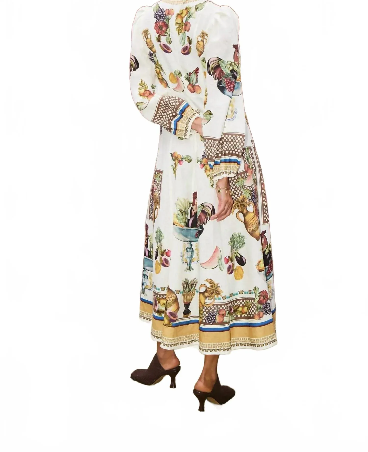 Просто добавьте шлепанцы или мюли, и вы готовы. Откройте для себя платье Mercado Midi от ALEMAIS - вневременную модель с длинными рукавами, изготовленную из 100% европейского льна. Это платье имеет свободный силуэт миди, идеально подходящий для весенних мероприятий, с удобными внутренними карманами для дополнительной функциональности. Платье имеет потайную молнию по центру спины и боковую молнию для удобства застегивания, а также эластичные манжеты для комфорта. Графический узор добавляет изюминку, делая его идеальным для любой праздничной вечеринки.