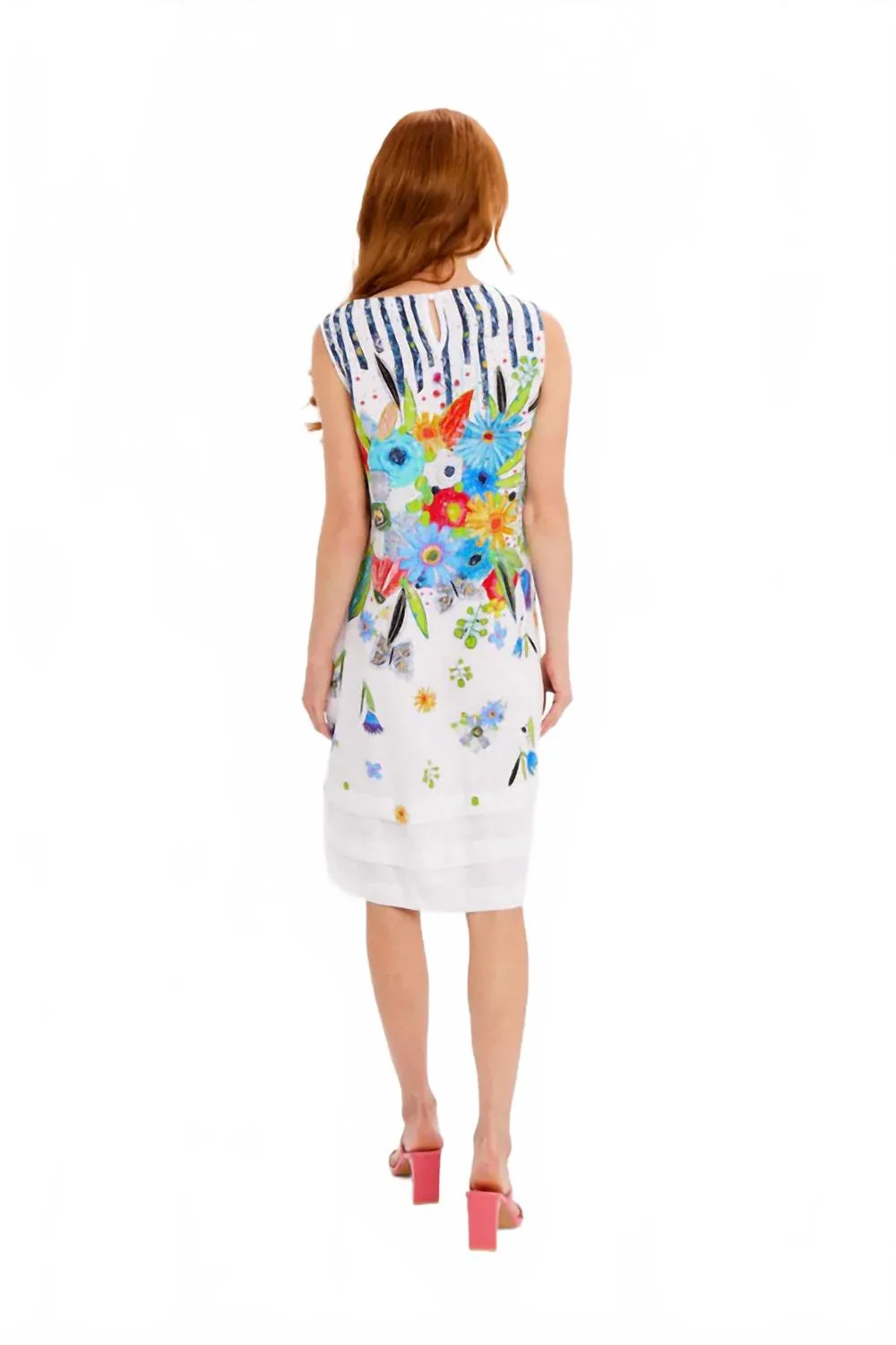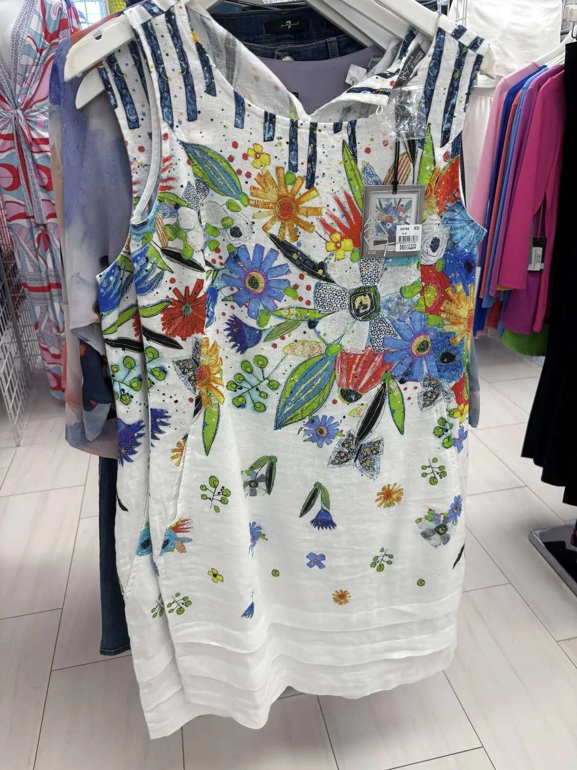 Легкое и элегантное платье, которое вы будете носить весь сезон. Дополните свой летний гардероб платьем DOLCEZZA Floral Woven Dress, созданным для богемного шика и идеально подходящего для отпуска. Это платье без рукавов с круглым вырезом и прямым силуэтом выполнено с абстрактным цветочным принтом, придающим ему женственность. Изготовлено из 100% льна, имеет удобные боковые карманы и застежку на пуговицы для удобства надевания. Инструкция по уходу: рекомендуется ручная стирка. Рост модели 175 см, размер 6, приблизительная длина 104 см для размера 12.