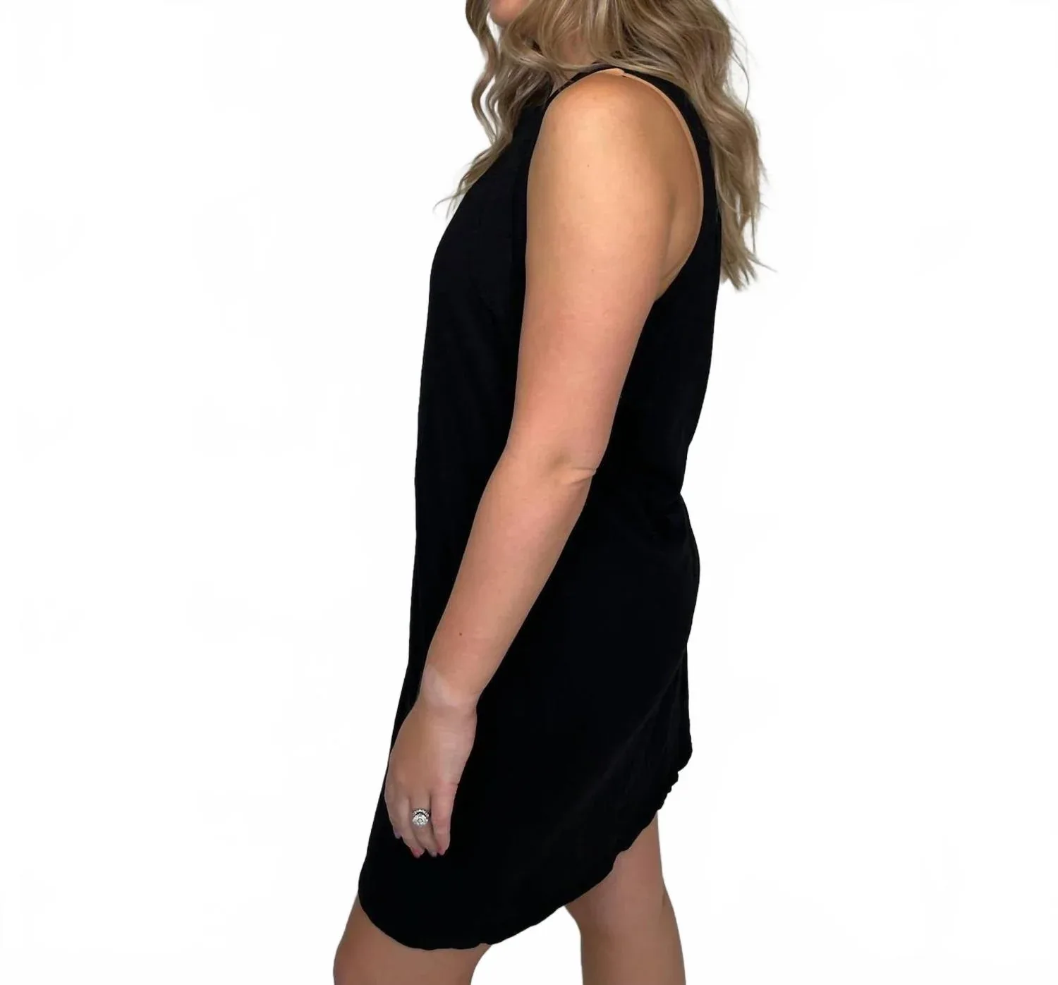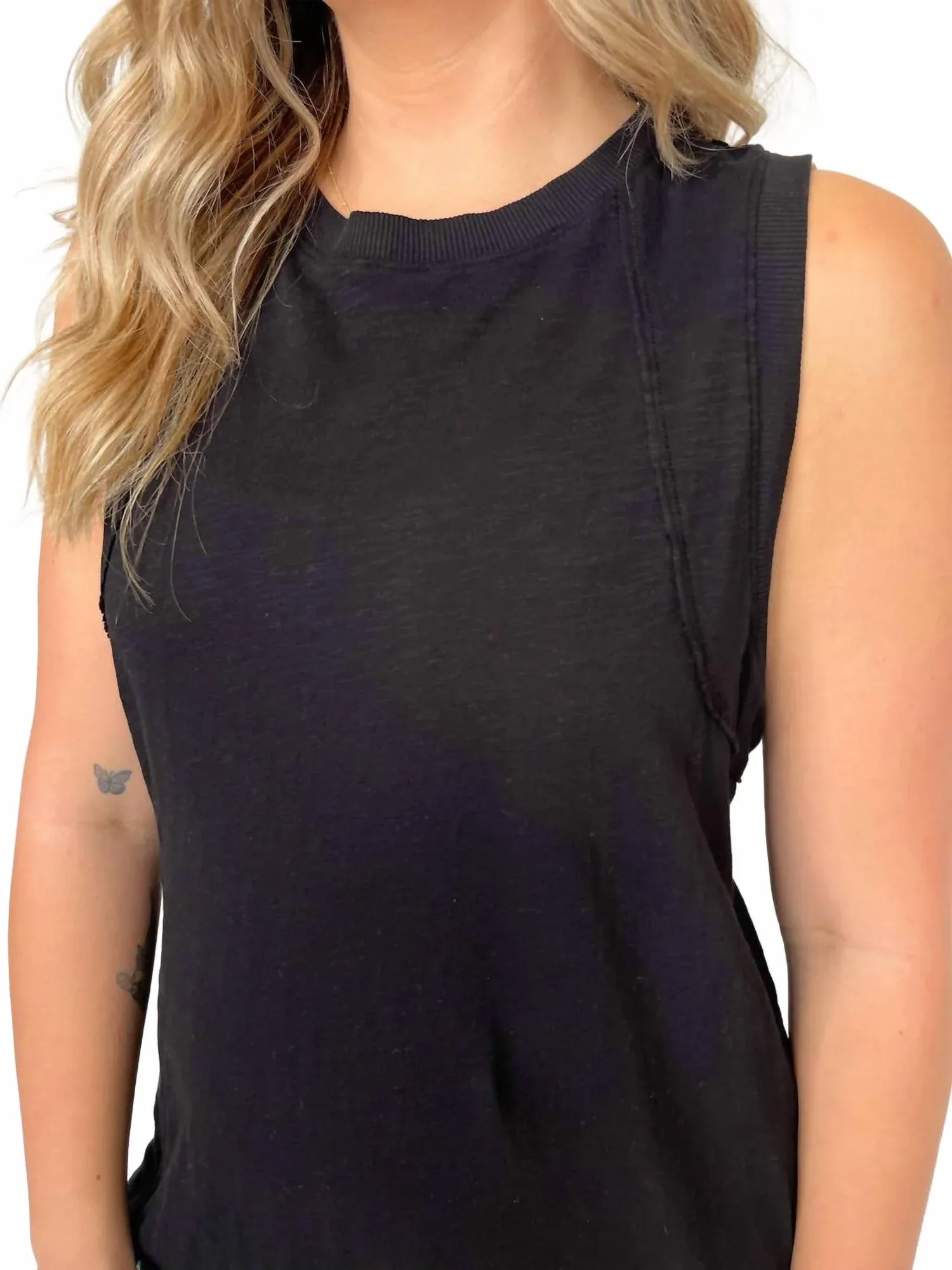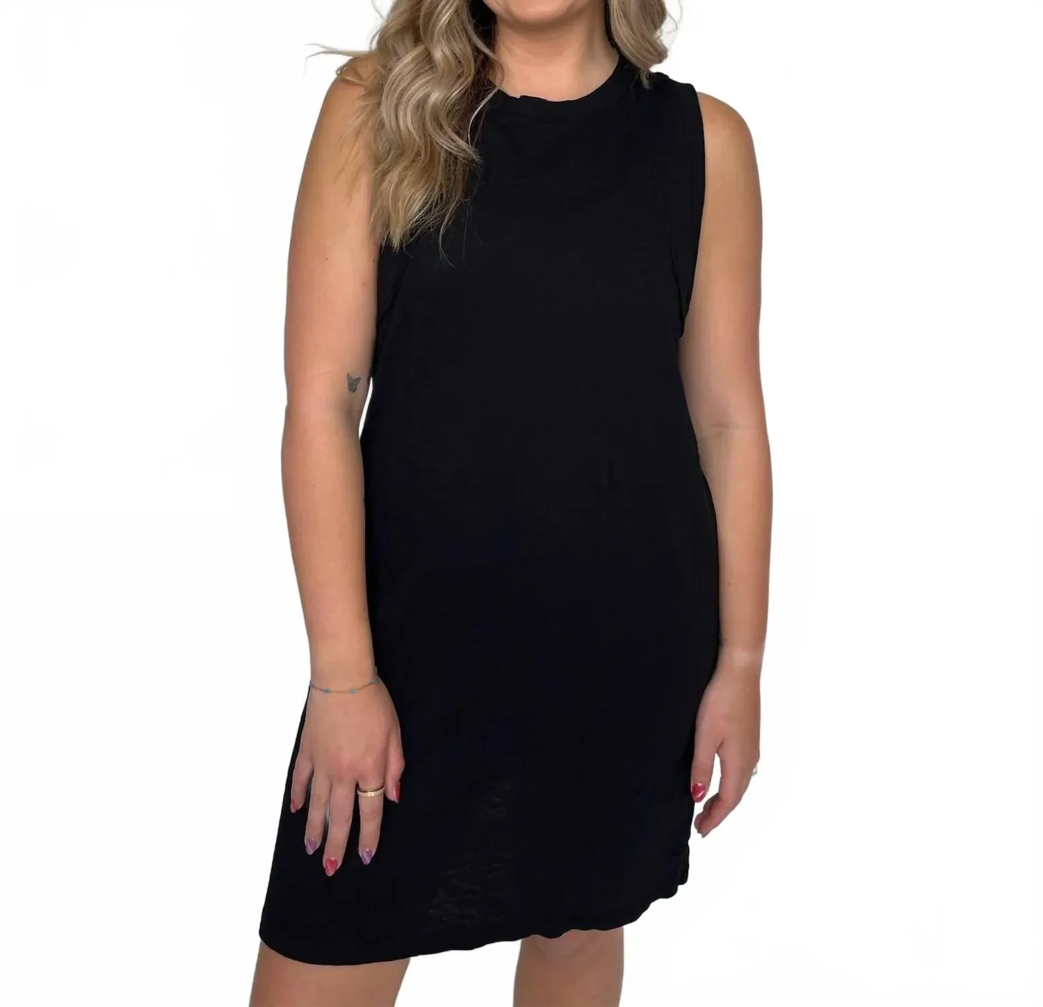Идеальное мини-платье для теплых месяцев. Представляем платье-майку Bobi Raglan Seamed Tank Dress - силуэт без рукавов, изготовленный из 100% хлопка для максимального комфорта и стиля. Это мини-платье имеет круглый вырез с ребристыми манжетами и открытыми швами на шее и рукавах, что подчеркивает его шикарный минималистичный вид. Идеально подходит для отдыха, платье доступно в черном цвете, органично сочетая универсальность и элегантность. Благодаря удобной застежке-молнии, уход прост: машинная стирка с вещами аналогичного цвета, сушка в сушилке при низкой температуре, избегайте химчистки и отбеливания. Мэди носит размер M, ее рост 168 см.