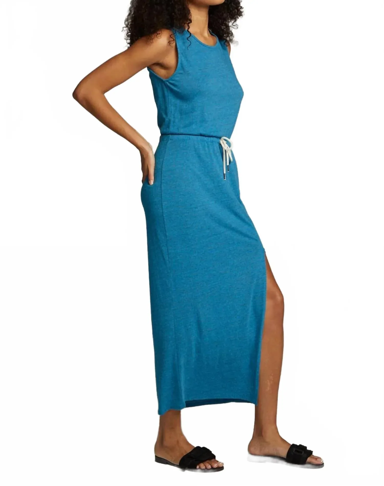 Платье-макси, такое же милое, как и удобное. Дополните свой летний гардероб платьем-макси без рукавов Durangoo Danube от Chaser потрясающего синего цвета. Изготовленное из мягкой смеси 50% полиэстера, 38% хлопка и 12% вискозы, это платье прямого силуэта имеет модный высокий разрез спереди и изящную завязку на талии. Эта импортная модель имеет удобную застежку-молнию и простые инструкции по уходу - машинная стирка и сушка на воздухе. Идеально подходит для праздничной вечеринки: сочетайте это платье-макси с босоножками на ремешках и эффектными украшениями для создания непринужденно-шикарного образа. Рост модели 175 см, размер S.