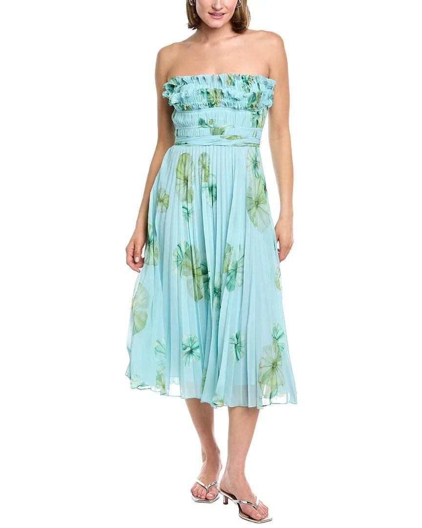 • Платье-миди Cathy в цвете "Пруд с кувшинками" с оборками, плиссированной юбкой и присборенным лифом.