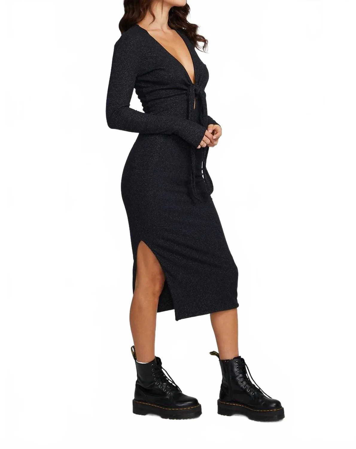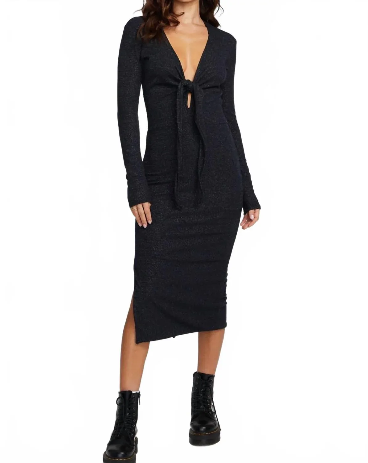 Платье миди настолько универсально, что вариантов его ношения бесконечно много. Дополните свой отпускной гардероб платьем Jenn Shadow Midi Dress от Chaser - эффектным платьем черного цвета, излучающим вневременное очарование. Это женское платье изготовлено из фактурной смеси 73% полиэстера, 7% спандекса и 20% люрекса, обеспечивающей комфортную эластичность и элегантный силуэт. Длинные рукава, соблазнительный V-образный вырез, завязка и смелый боковой разрез делают его идеальным для минималистичного, но гламурного летнего образа. Сочетайте его с любимыми туфлями-лодочками для непринужденно шикарного образа. Рост модели 175 см, размер S.