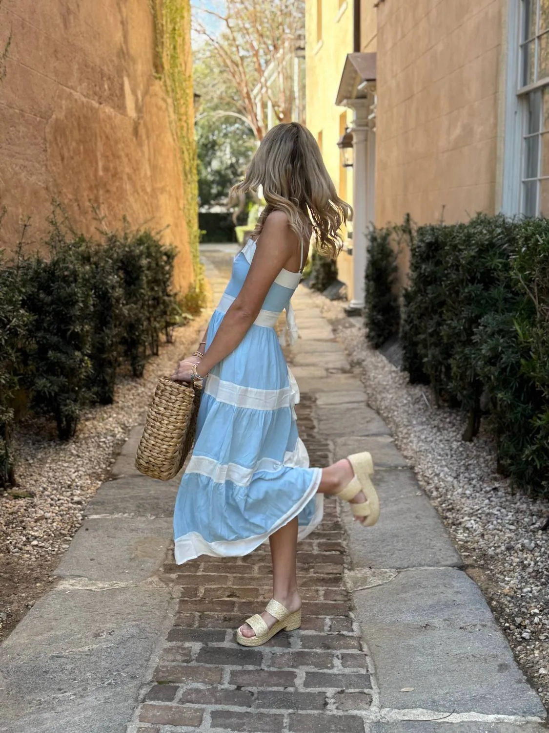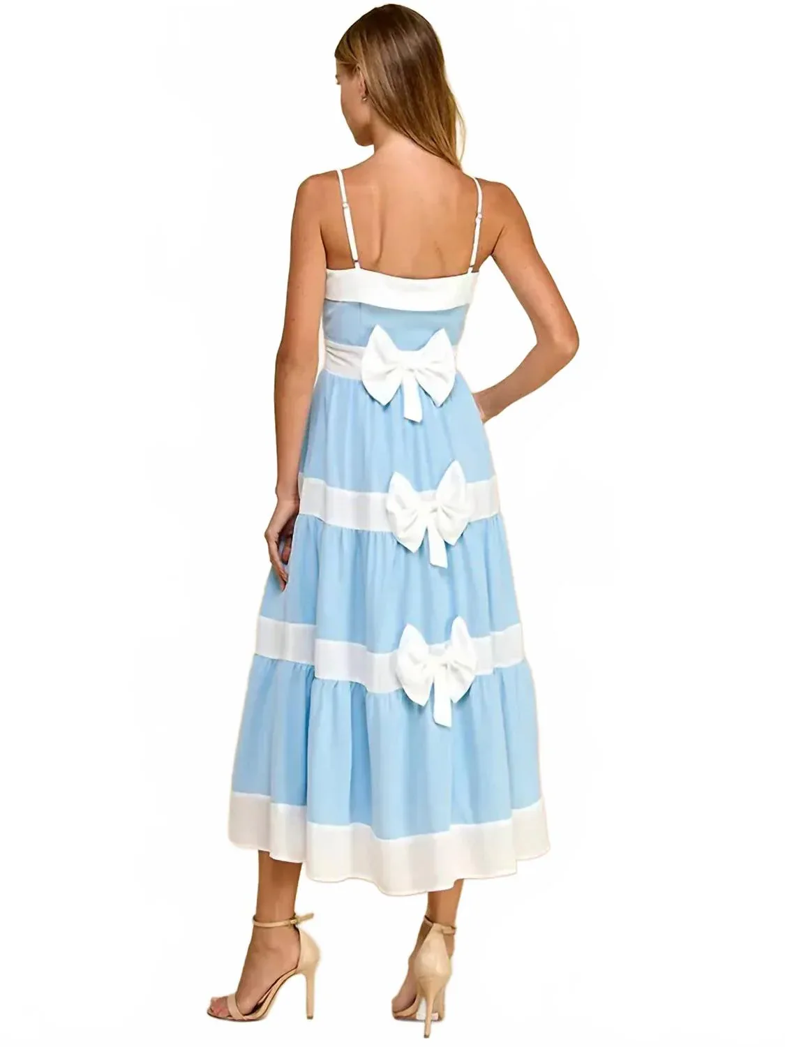 Просто добавьте шлепанцы или мюли, и вы готовы. Представляем миди-платье Swing Into Spring от TCEC - великолепное платье в сине-белую полоску, созданное для безупречного праздничного образа. Платье с тонкими бретелями и изящным А-образным силуэтом изготовлено из хлопковой смеси, обеспечивая комфорт и стиль. Застежка - боковая молния. Уход - химчистка. Благодаря бантикам и регулируемым бретелям, оно всегда идеально сидит.